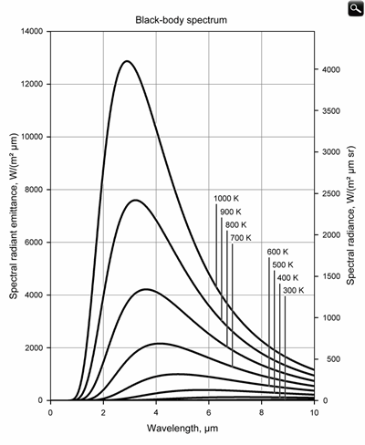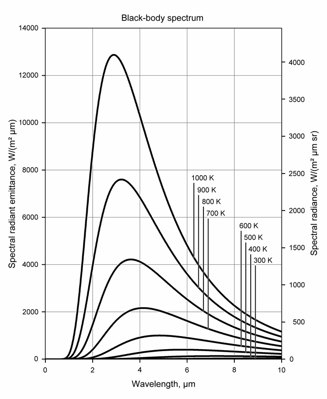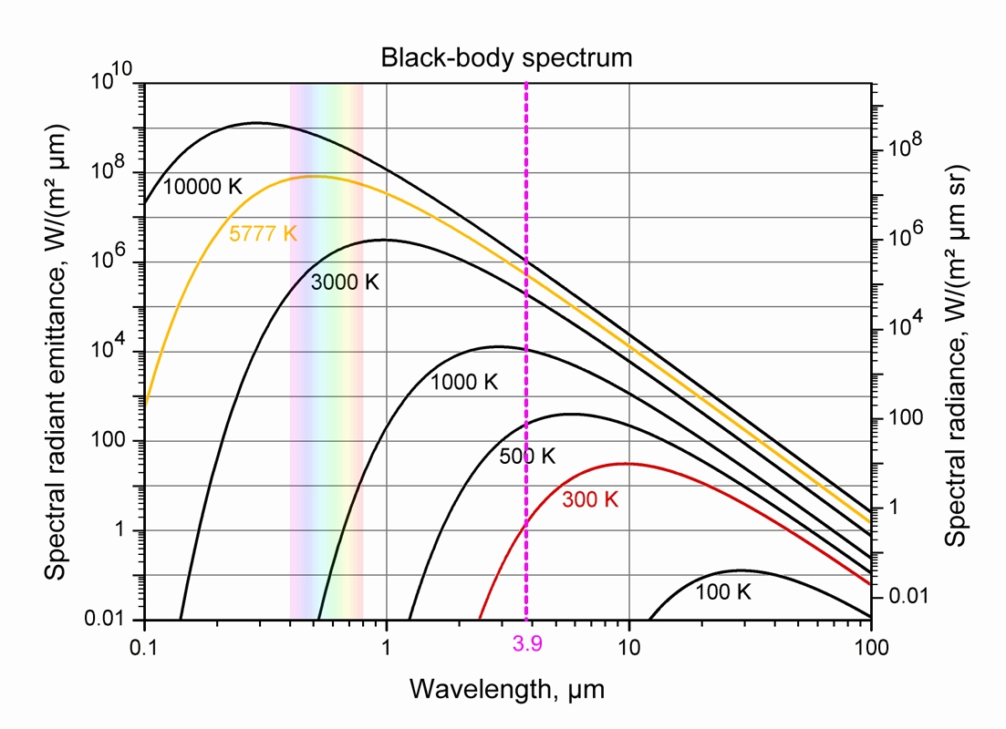Bodies at different temperatures have different curves, with a steep rise of irradiance on shorter wavelengths and a long descent on longer wavelengths (Figure 5.2).