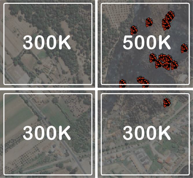 Bands around 3.9 μm are also suitable for detecting fires because of two other properties: Temperature responsivity and Sub-pixel response.