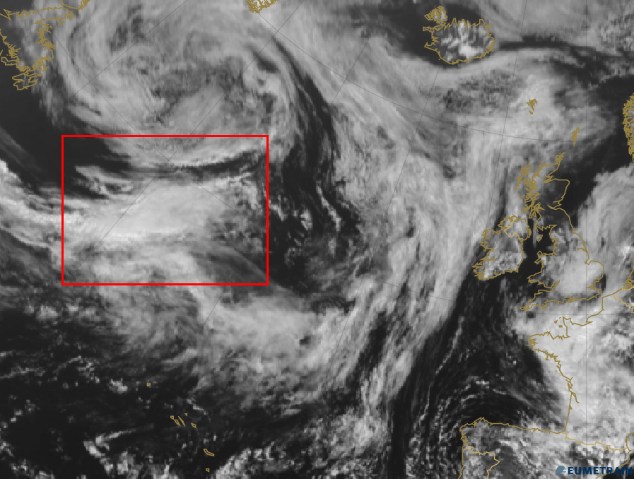 A baroclinic leaf begins with the undulation of an air mass boundary. This process can be best observed in water vapour images because they show as a tell-tale black stripe. During the development process, the leaf takes on a typical s-shaped moisture pattern in WV imagery, with a concave and a convex part (figure 1a). In the majority of cases, the convex part of the leaf structure is well defined in the beginning, but may become less distinct with further development. In WV images, a dark zone that narrows over time can often be seen at the poleward edge of the concave part. A dark spot corresponding to a dynamic tropopause anomaly can also be seen in this part. Even though its shape changes, this feature will remain prominent throughout the leaf structure's development.