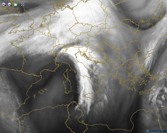 In summer season, vertical humidity transport is mostly convective. While most models process atmospheric instability quite accurately, they often fail to pin down the precise location of convective vertical transport. This may result in grey shade differences between real and simulated satellite images (figure 6).