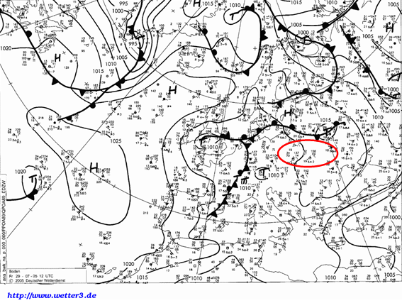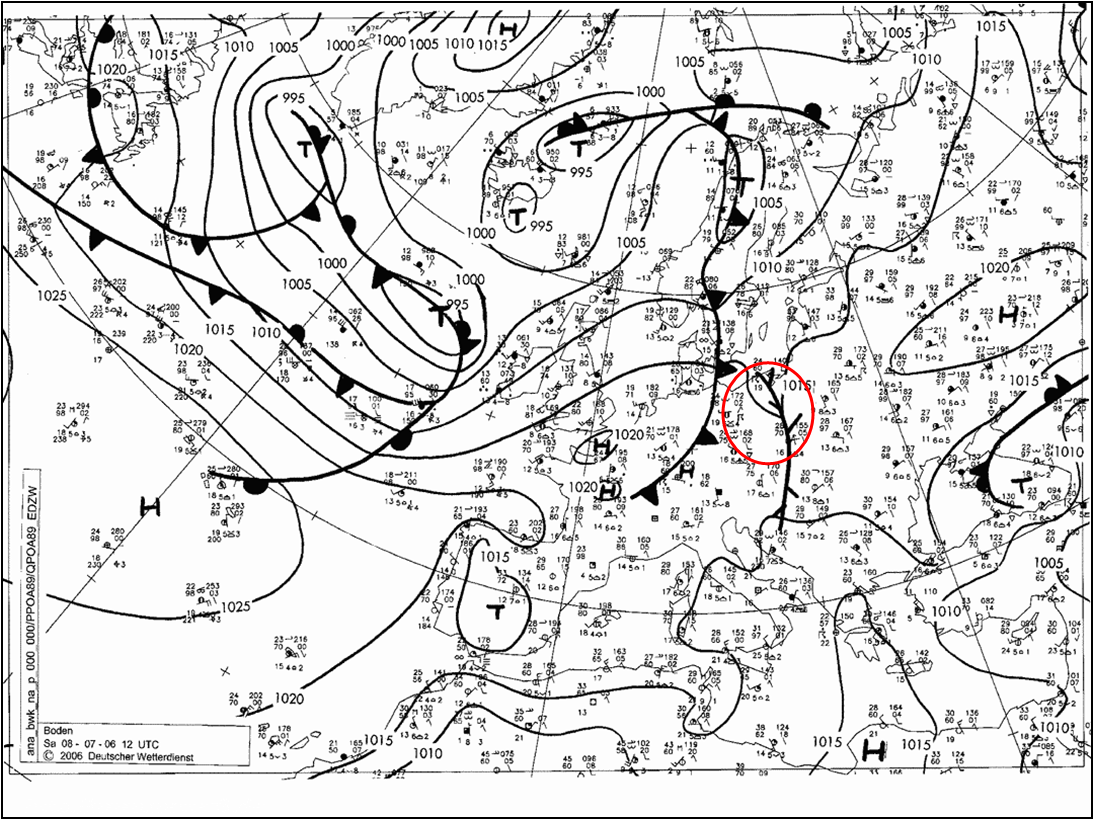 Figure 1: DWD surface chart, 8 July 2006, 12 UTC