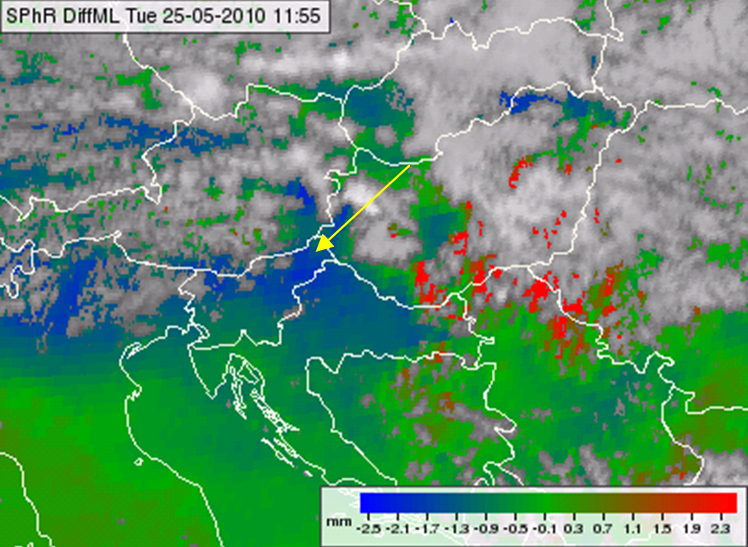 On 25 May 2010 a very interesting convective system developed in central Europe. A severe thunderstorm developed extremely fast over western Hungary (Fig. 5).