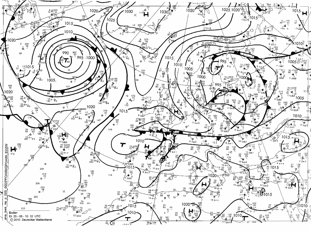 Figure 6: Surface chart from 25 May 2010, 12 UTC