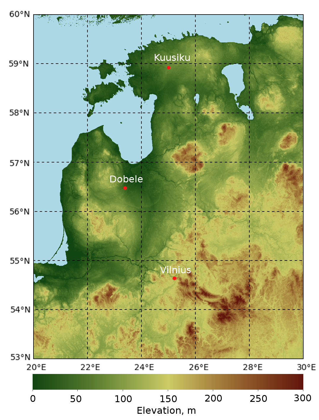 | Dobele, Latvia | 28,0 | -4,1 | 0,64 | 35 |
