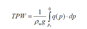 where Ρw is the water density, which is 1000 [kg/m3]; g is the gravitational constant 9.8 [m/s2]; q(p) is the mixing ratio (g/kg) of water vapor in hPa at pressure level p and ps is surface air pressure in hPa.