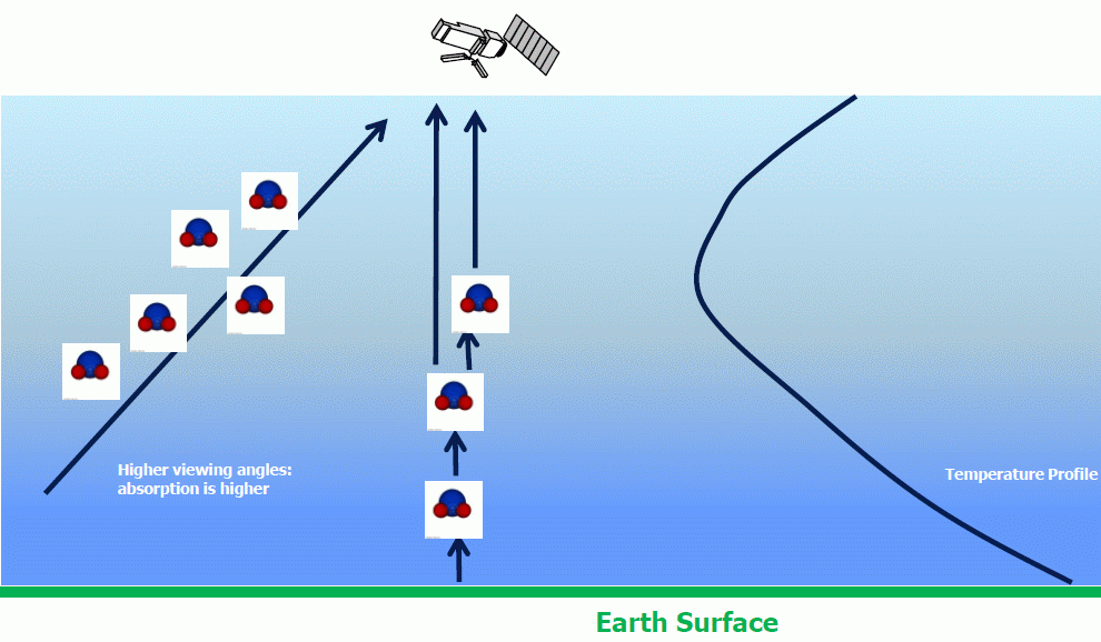Some trace gases like water vapour are so obtrusive that all radiation arriving at the satellite instrument stems from the atmosphere alone, since all direct radiation from the ground has been absorbed on the way to the satellite (Figure 4).