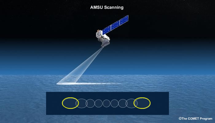 Various technical implementations are currently used to augment the instruments' field of view. For example, NOAA and MetOp AMSU/MHS instruments use the linear cross track scanning method. The disadvantage of this method is that the resolution of the AMSU instrument, for example, degrades continuously from 45 km at nadir to 75 km at the edge of the swath.