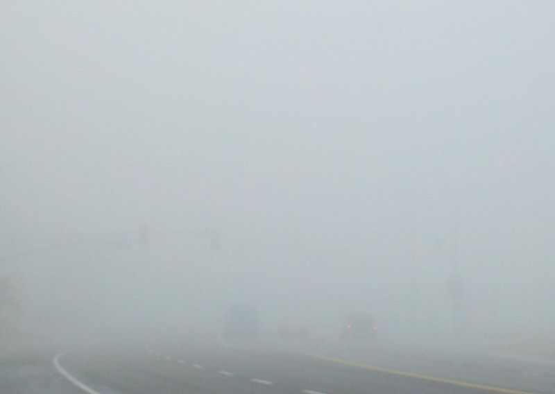 Figure 5: Dense fog on a motorway prevents a view of more than 50 meters. All radiation from greater distances is absorbed and scattered by the fog droplets.