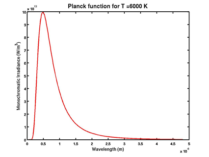 Figure 2.1: Blackbody radiance curve for the sun at 6000 K