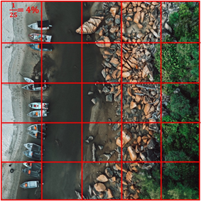 The FVC accounts for the amount of vegetation distributed on a flat background. For a pixel such as that on the next figure, FVC = 24% would tell us the fraction of the total pixel that is covered by green vegetation.