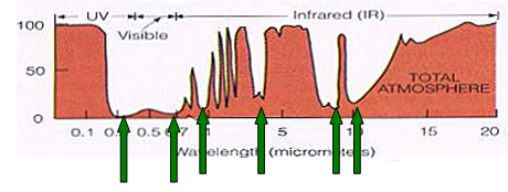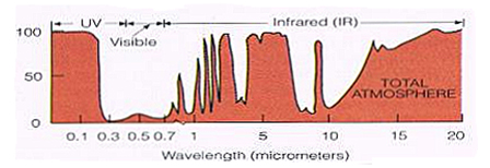 Figure 2.8 shows the absorption spectra for the various atmospheric gases between the top of the atmosphere and the earth's surface, as a function of the wavelength, namely:
