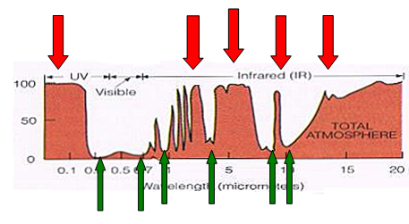 To answer to this question you should have mentally combined the individual effects of the atmospheric gases. This corresponds to Figure 2.9: