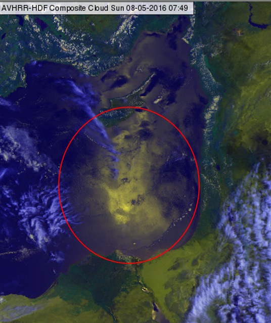 Figure 2.11: Sun glint over the east Mediterranean on 8 May 2016 at 07:49 UTC