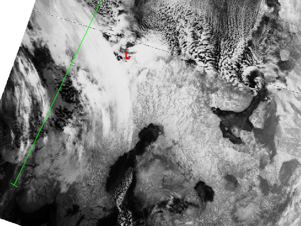 The NOAA image shows the typical signs for an outbreak of arctic air, such as numerous cloud streets oriented north-southwards. The area with enhanced convection is clearly seen as separate, white cloud masses north-west of Norway. A band of jet fibre cirrus extends from northern Sweden to the north-west.