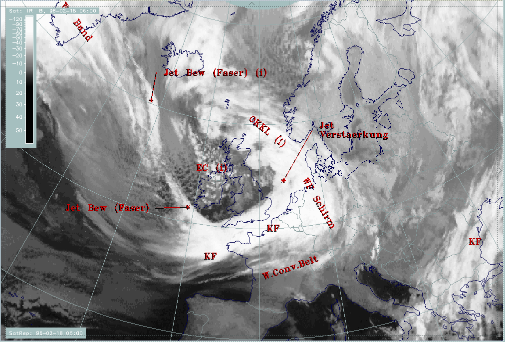 18 February 1996/06.00 UTC - Meteosat IR image; SatRep overlay: names of conceptual models