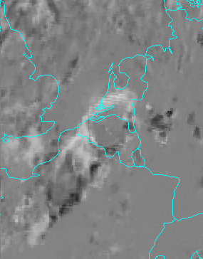 Developments and movements of the most important cloud clusters show best with deviation images. High pixel values (white) indicate movement and/or development of high clouds, while low pixel values (black) give an indication of decreasing cloudiness.