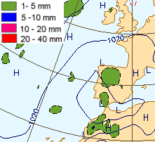 area of a "saddle point" between a low over Northwest Africa, another low to the South west of Ireland, a high over the North Sea