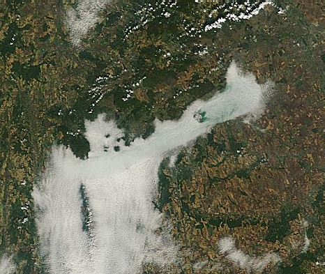 Combined high spatial and temporal resolution can be beneficial for forecasting fog dissipation. 5-minute data is particularly useful for monitoring rapid fog dissipation. Fig. 11a shows a MODIS true colour image on Lake Balaton covered with fog. Fig. 11b shows the fog dissipation from 06:10 to 10:55 UTC (animation created from 5-minute SEVIRI HRV Fog RGB images).