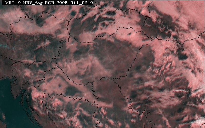 | Figure 11b: METEOSAT HRV Fog RGB animation (11 October 2008, 06:10-10:55 UTC) |