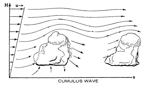 On the other hand, shallow convection is able to trigger so-called thermal waves. The vertical pulse of rising air acts similarly to a mountain barrier and obliges the air stream either to pass over the cumulus cloud or around it (figure 6).