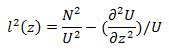 The Scorer parameter l [m-1] is used to describe whether gravity waves will develop or not. It combines the Brunt-Väisälä frequency with characteristics of the vertical wind profile and is given by the following equation: