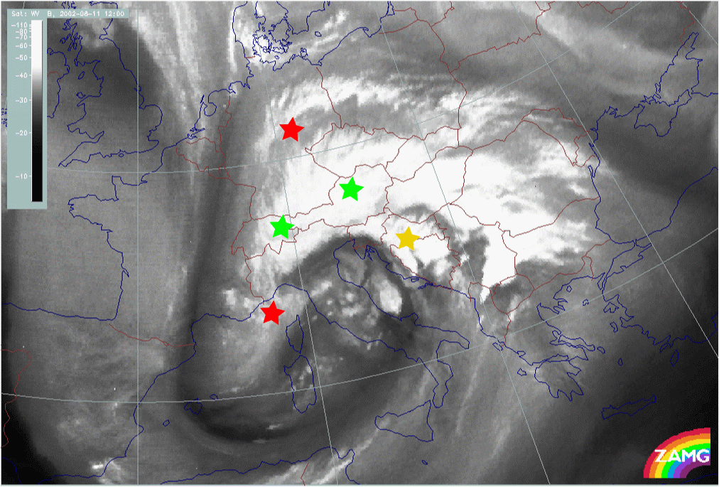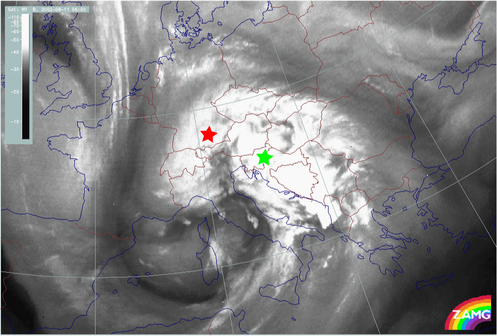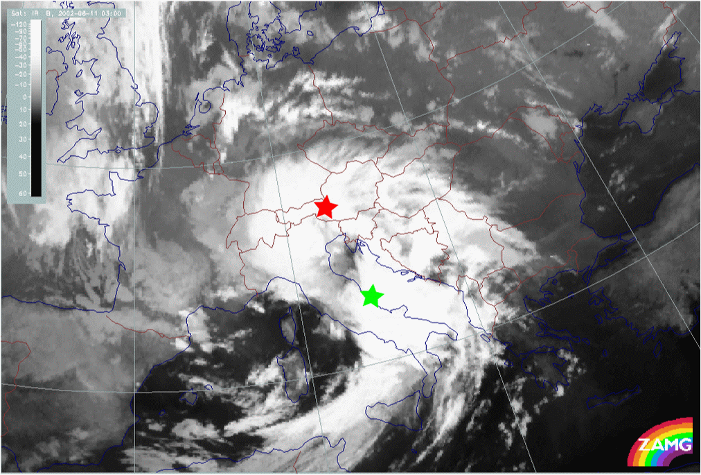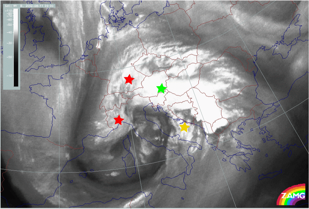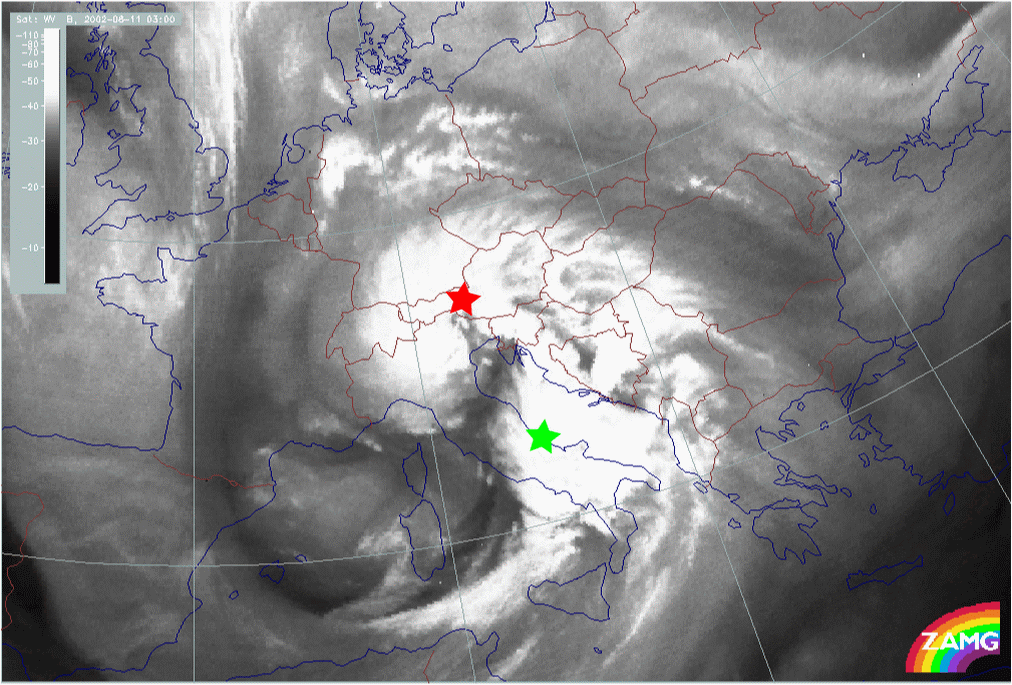 - The intensification area develops into a Wave bulge and then into a well developed cloud spiral, extending over SE-Austria, Slovenia and finally over the whole of Austria (green star in loop above).
