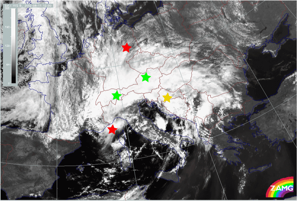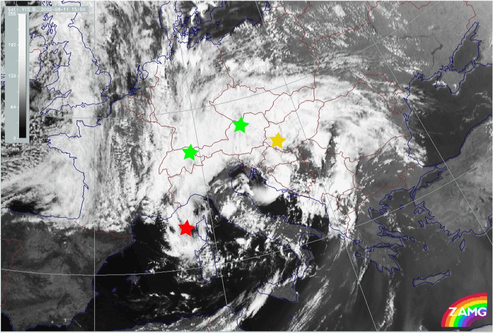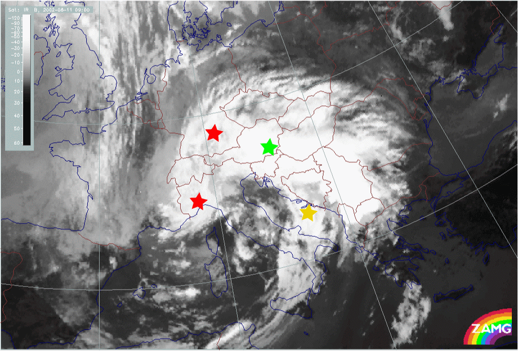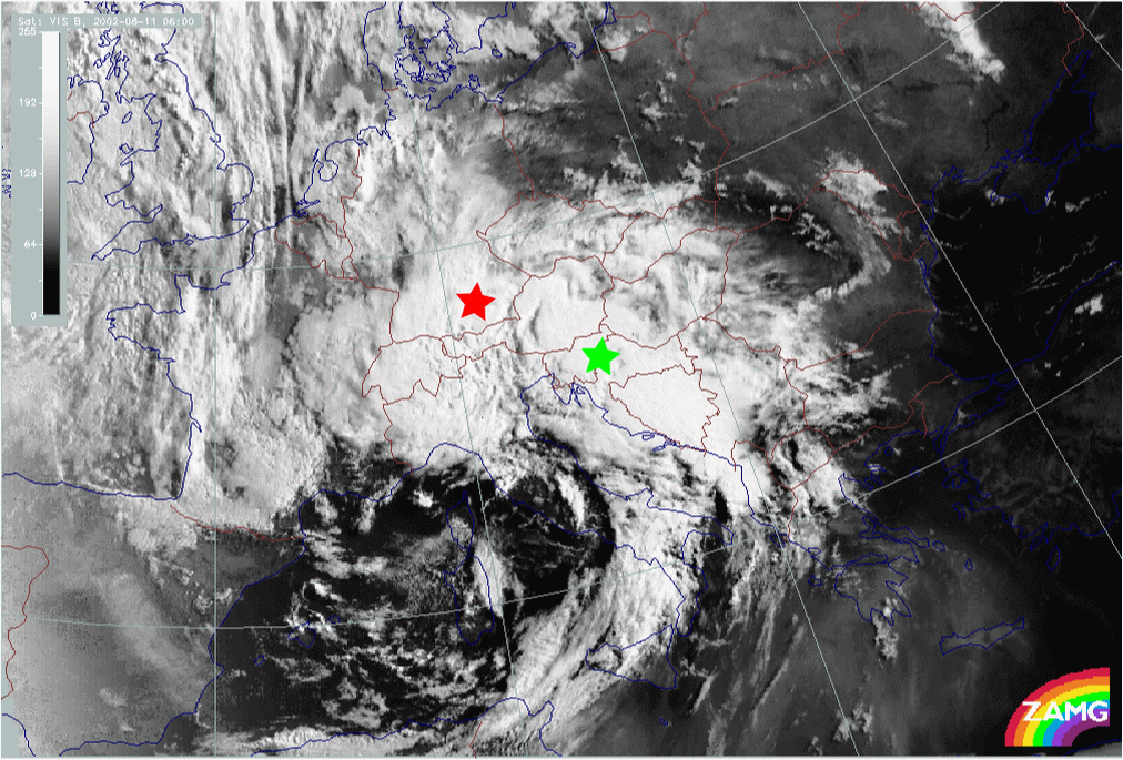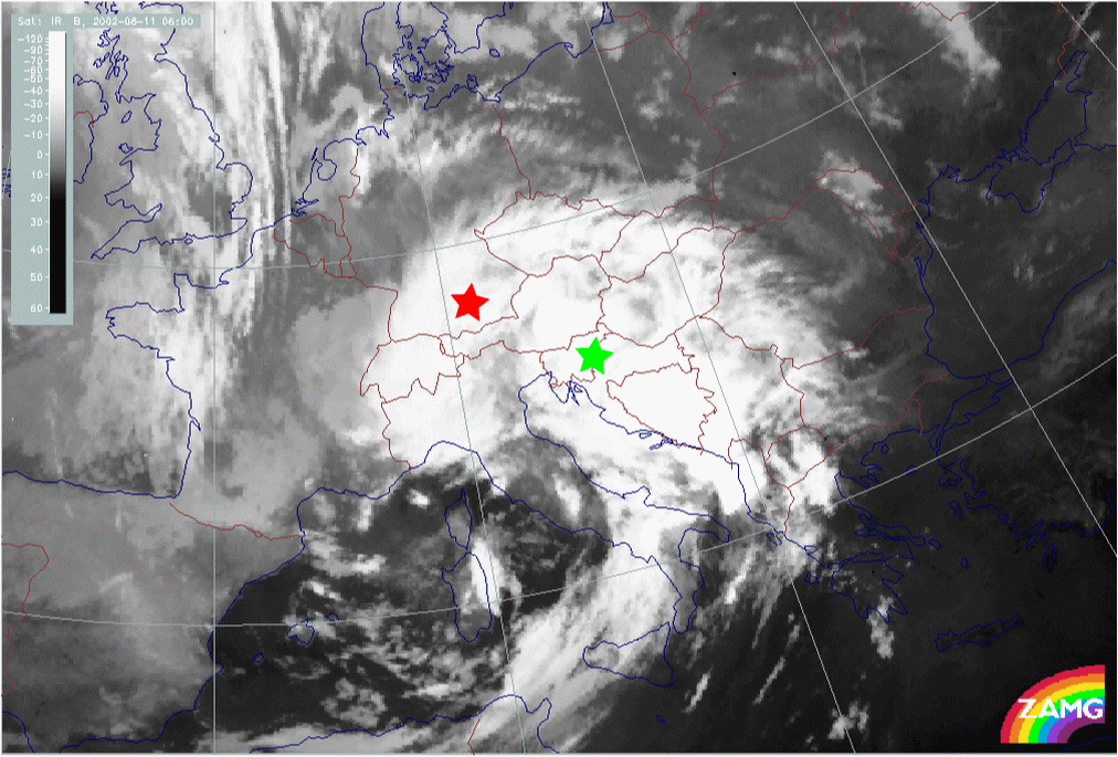 - The intensification area develops into a Wave bulge and then into a well developed cloud spiral, extending over SE-Austria, Slovenia and finally over the whole of Austria (green star in loop above).