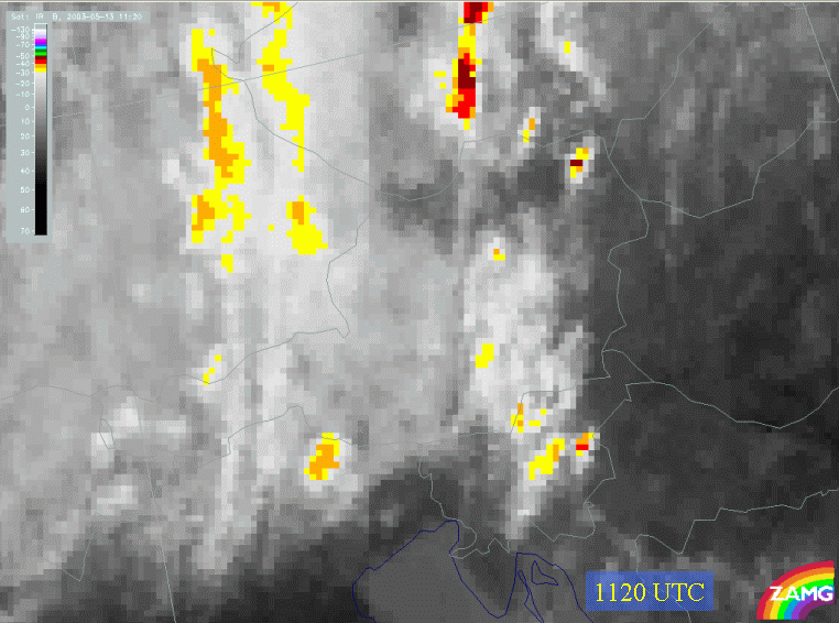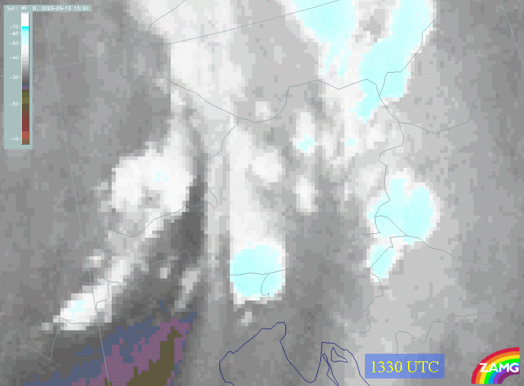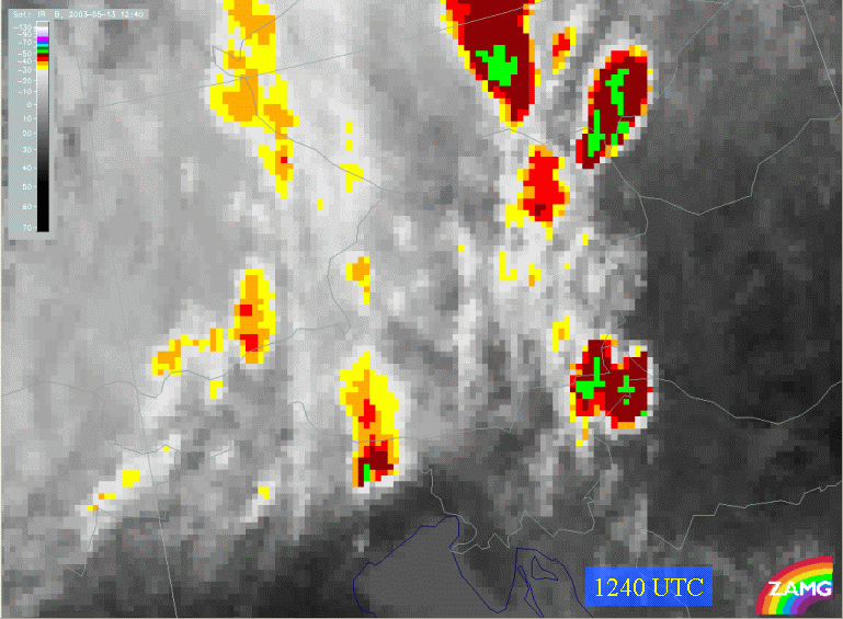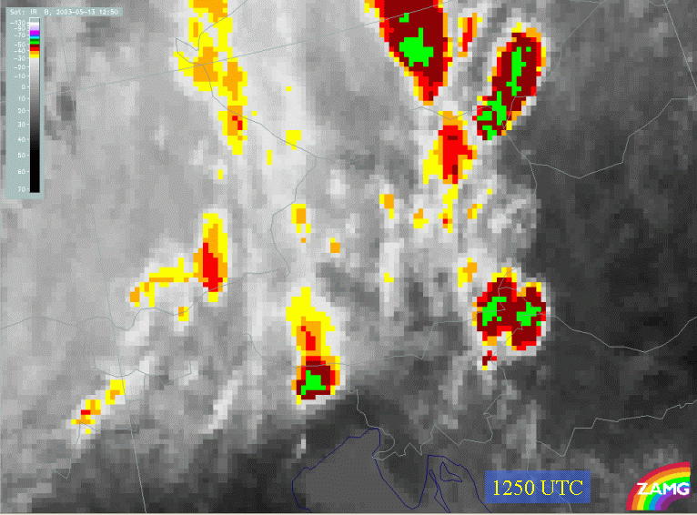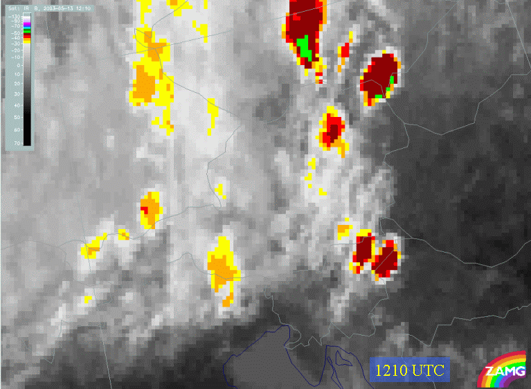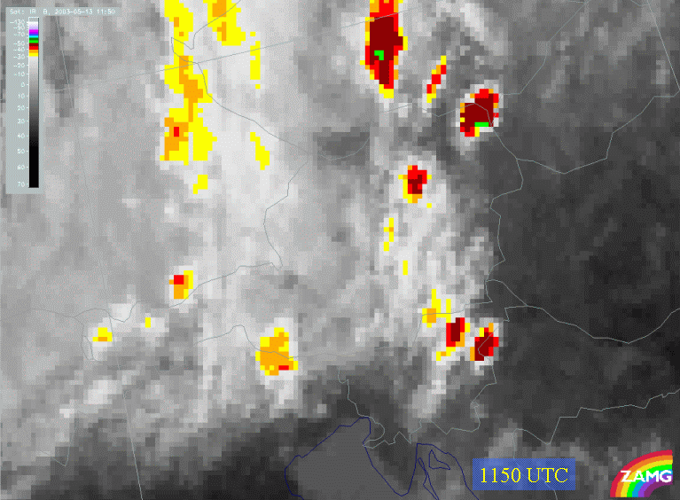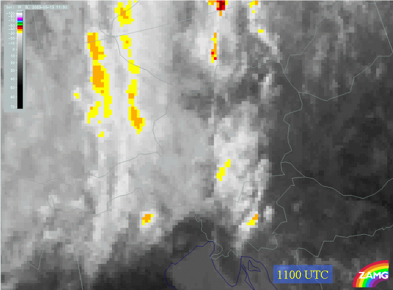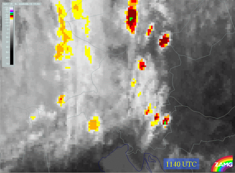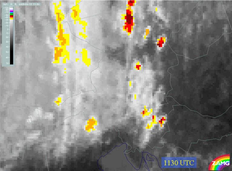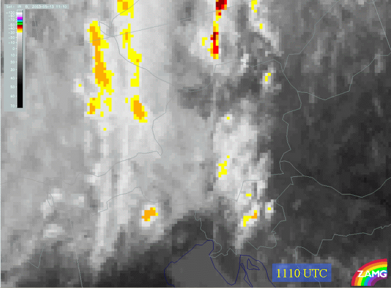 Figure 13: 13 May 2003/11.00 UTC - Meteosat IR enhanced image; 11.00 - 14.00 UTC 10-minutes image loop