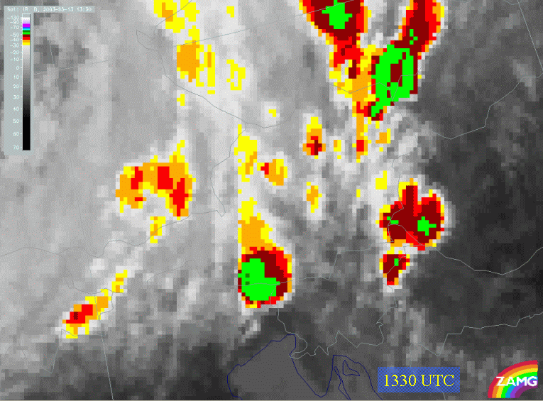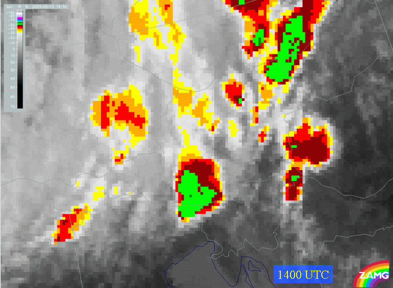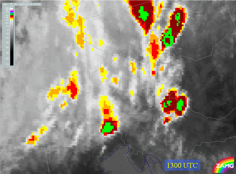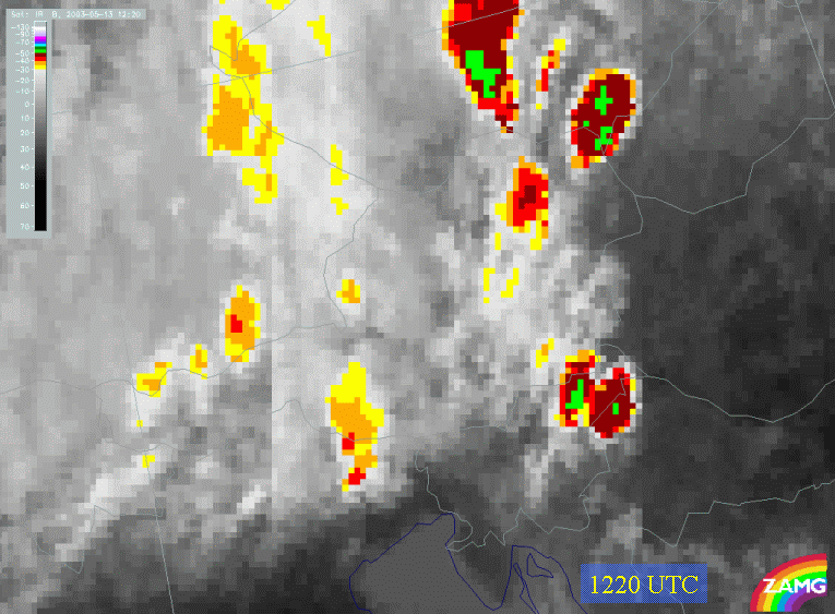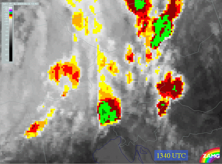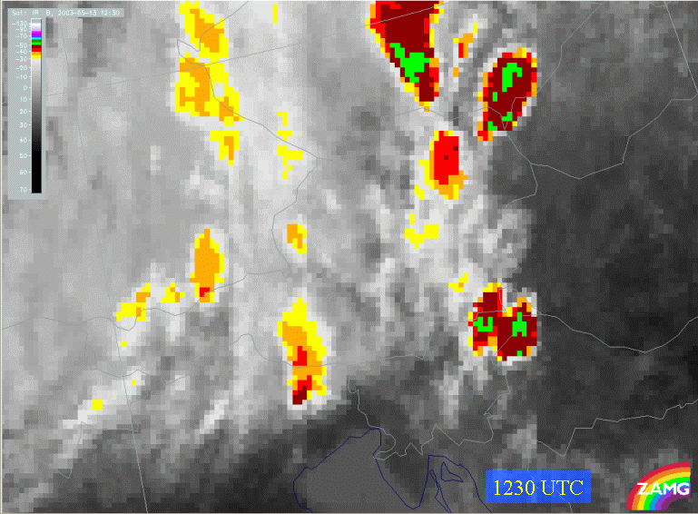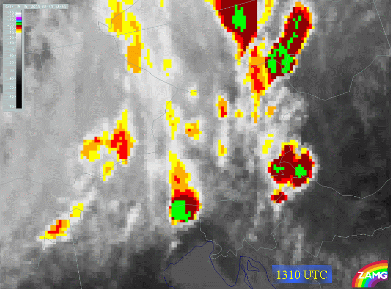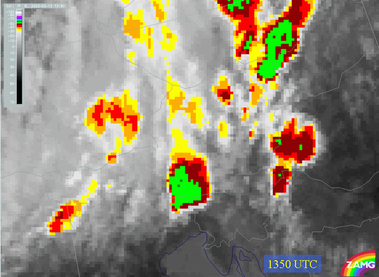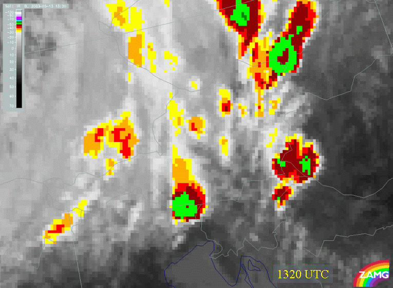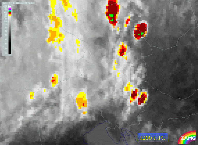 Figure 13: 13 May 2003/11.00 UTC - Meteosat IR enhanced image; 11.00 - 14.00 UTC 10-minutes image loop