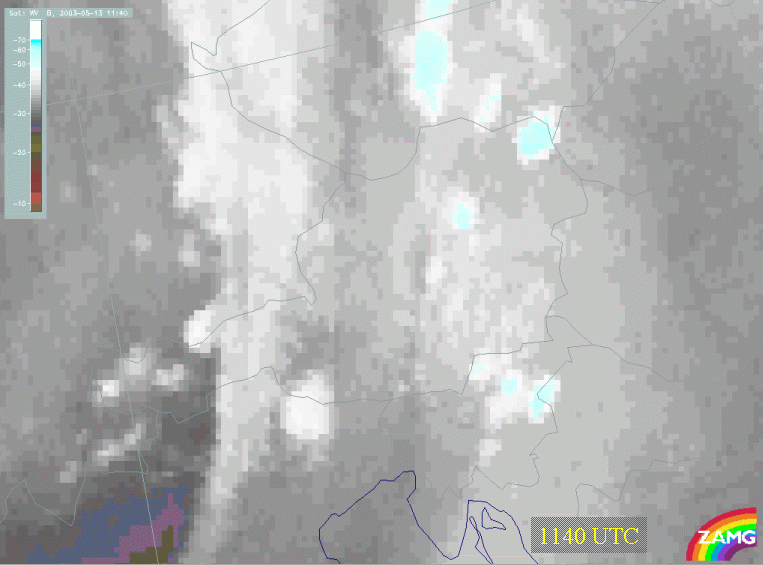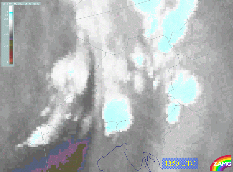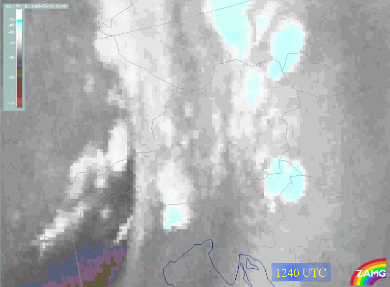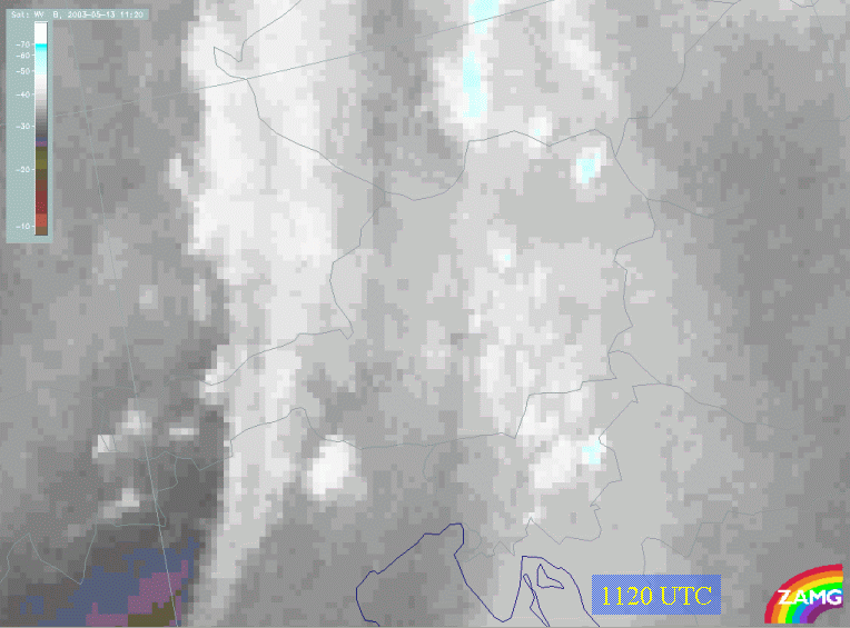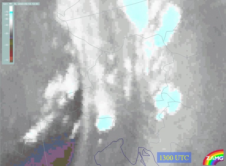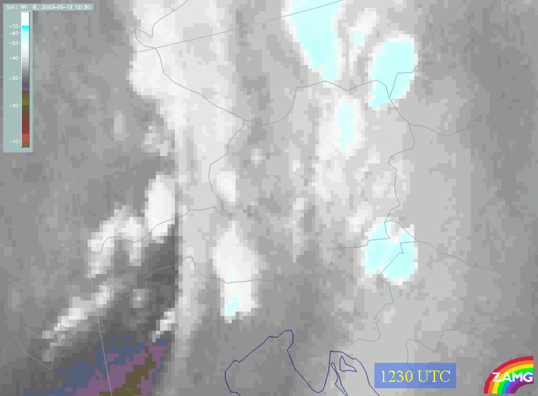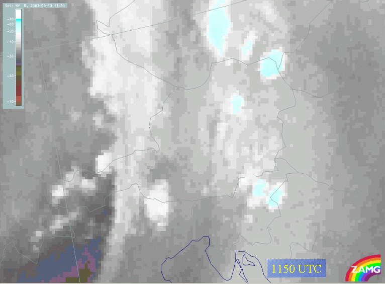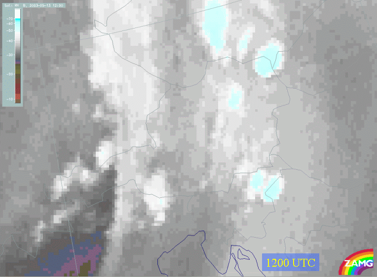 Figure 14: 13 May 2003/11.00 UTC - Meteosat WV enhanced image; 11.00 - 14.00 UTC 10-minutes image loop