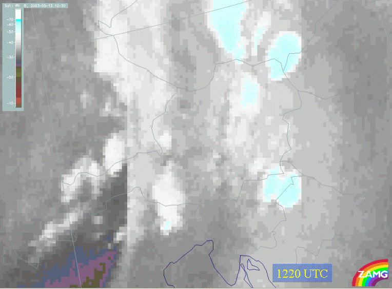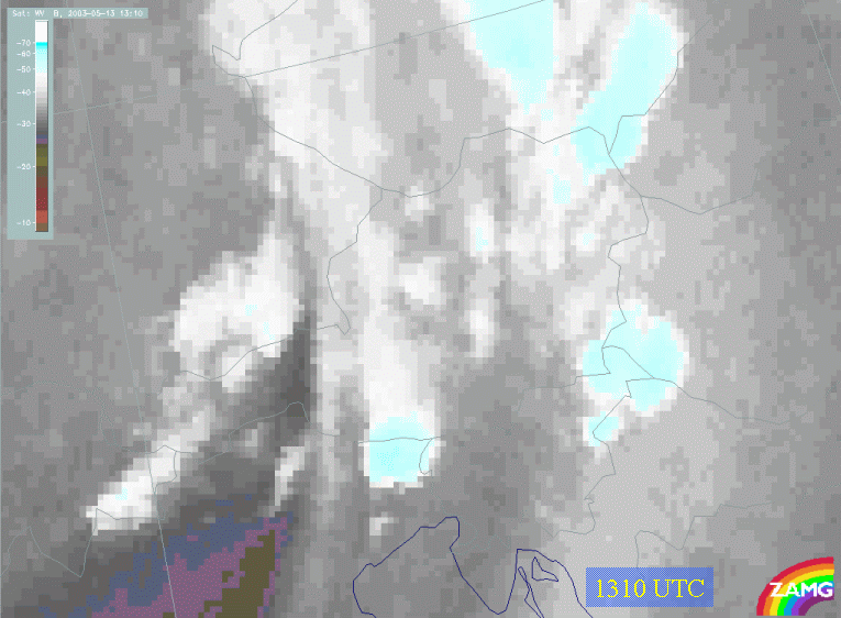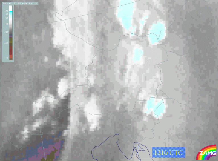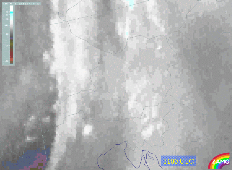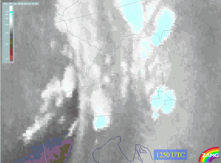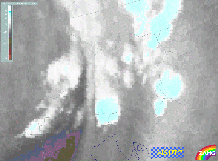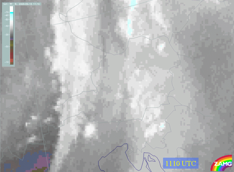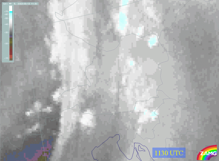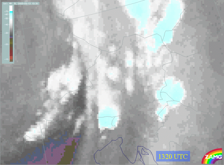 Figure 14: 13 May 2003/11.00 UTC - Meteosat WV enhanced image; 11.00 - 14.00 UTC 10-minutes image loop