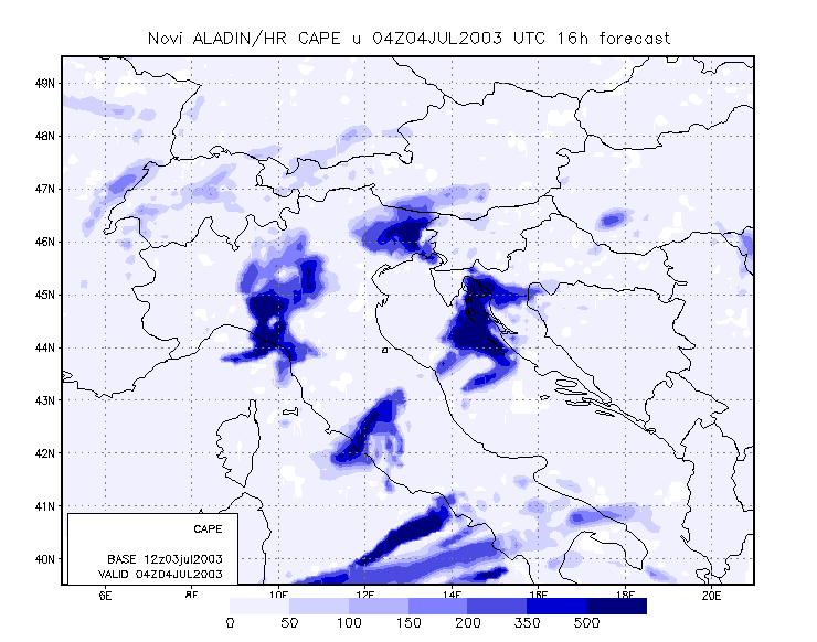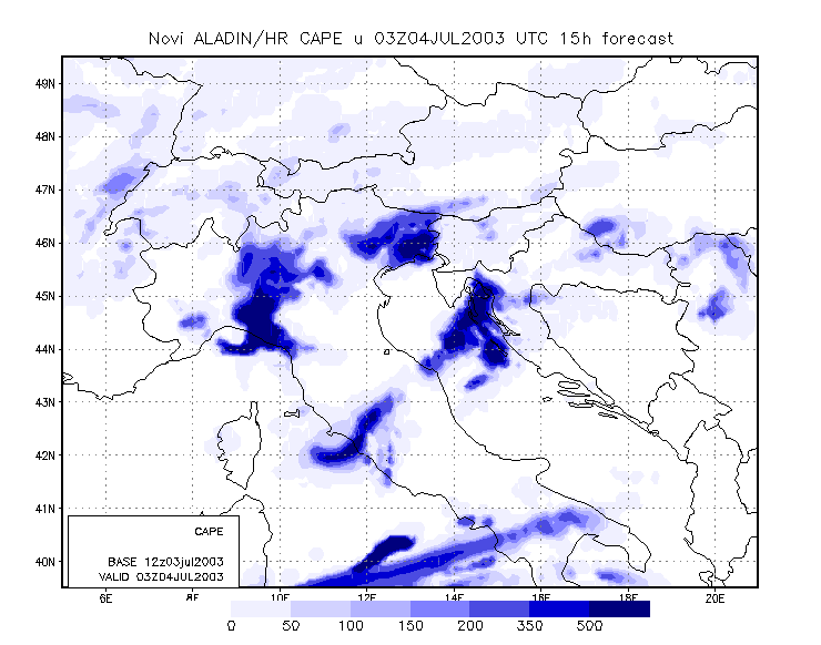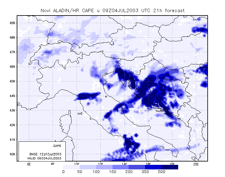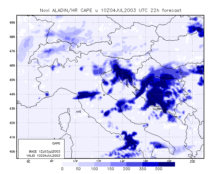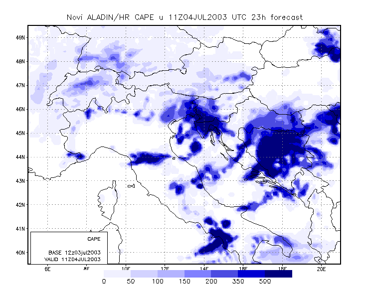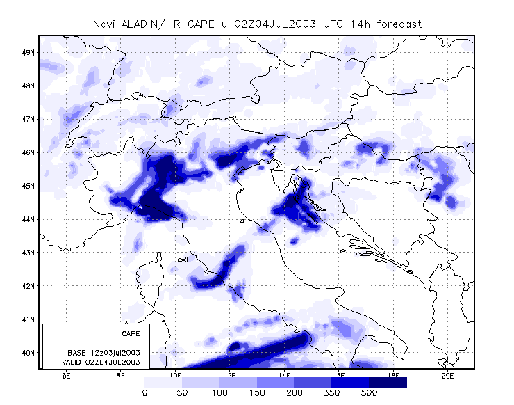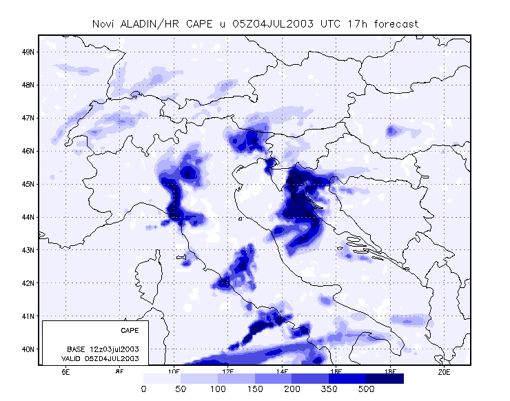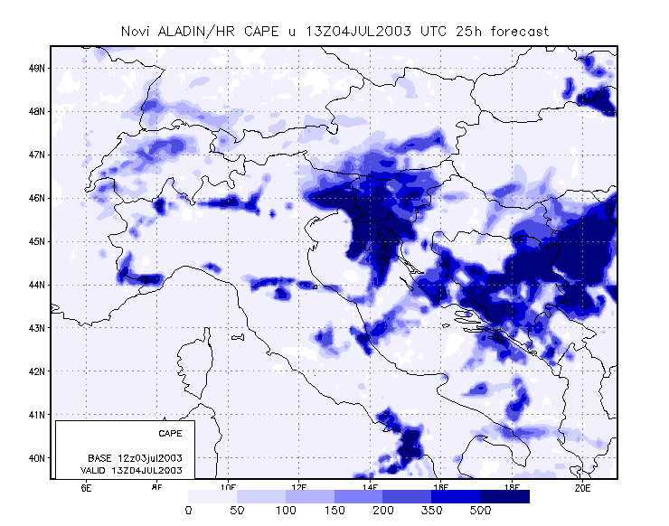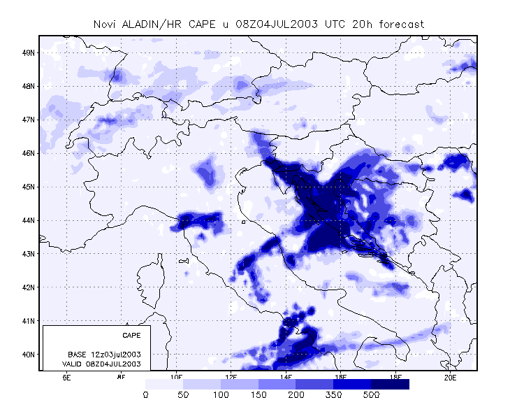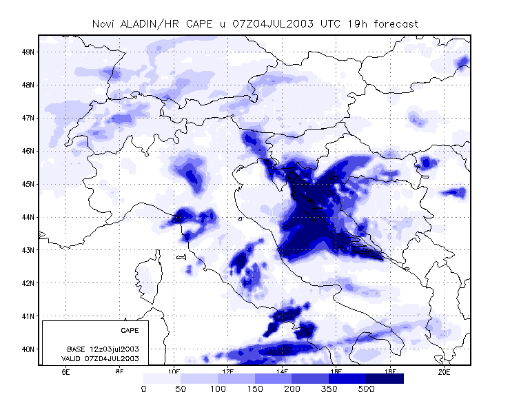 To get closer to the scale of the event, meso-scale model output is studied. The model used is the Aladin model, with 8 km resolution, and which is operationally run at DHMZ.