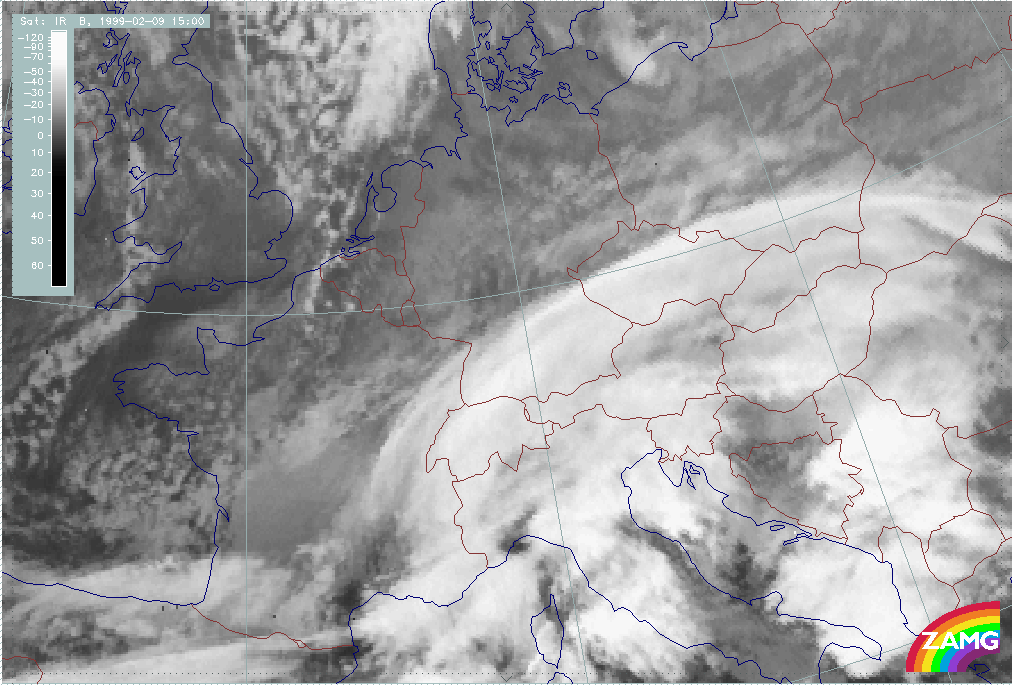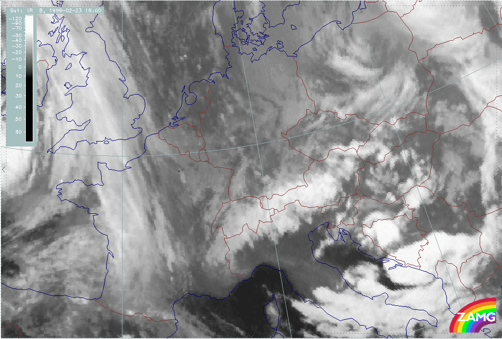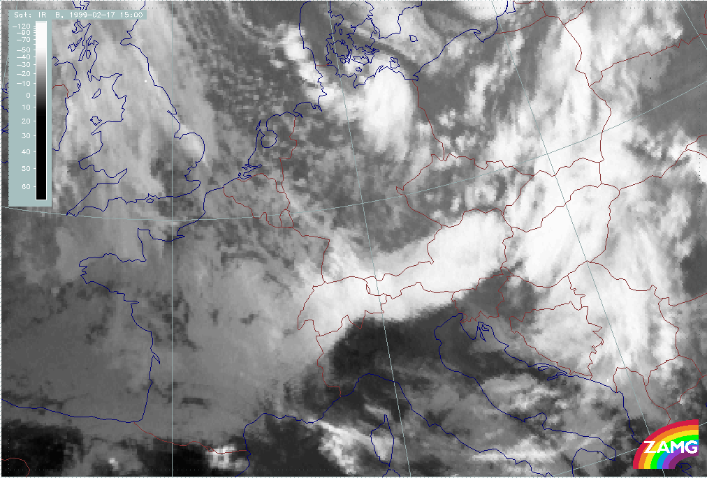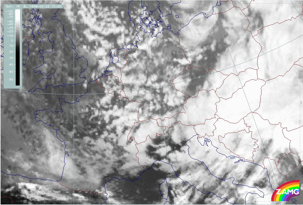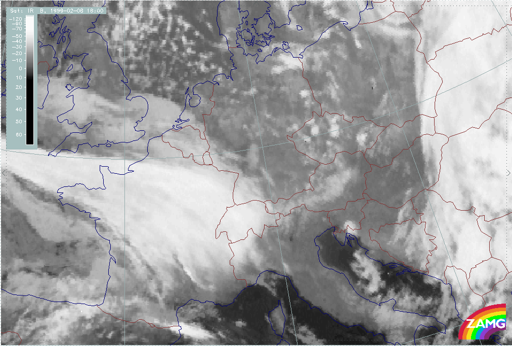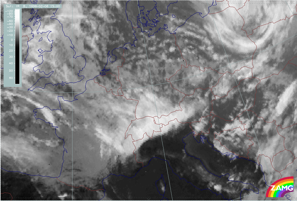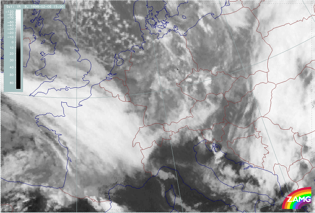 08 February 1999/15.00 UTC - Meteosat IR image; 08/15.00 - 10/18.00 UTC 3-hourly image loop