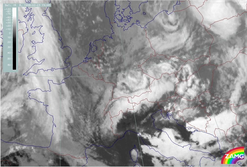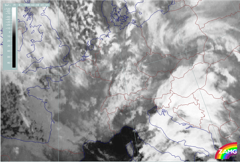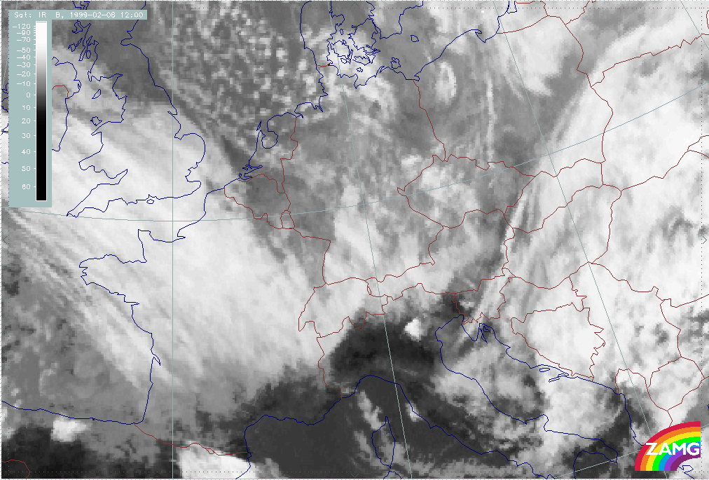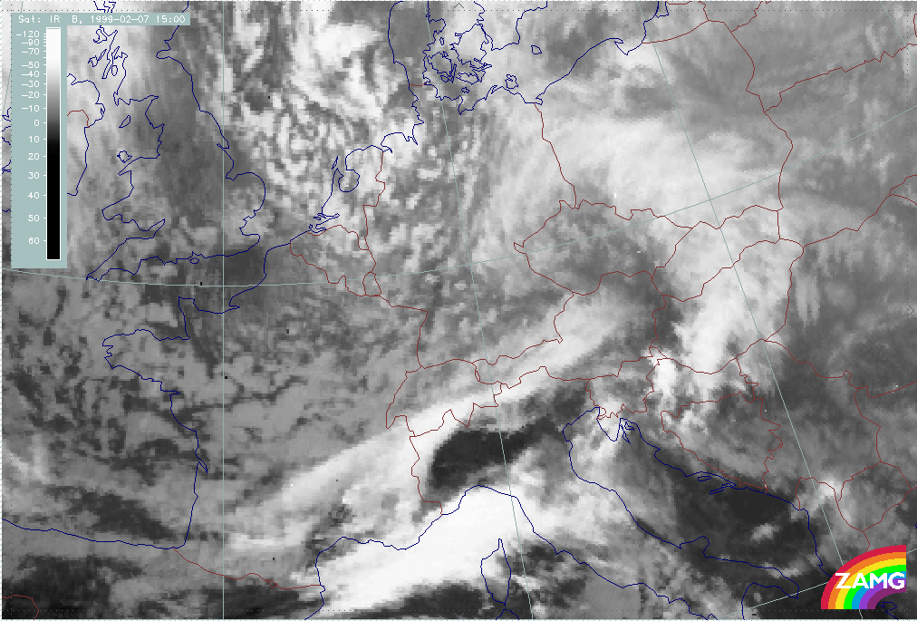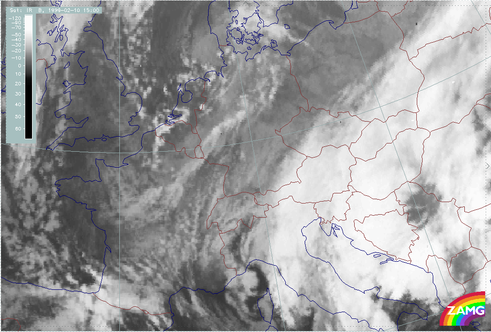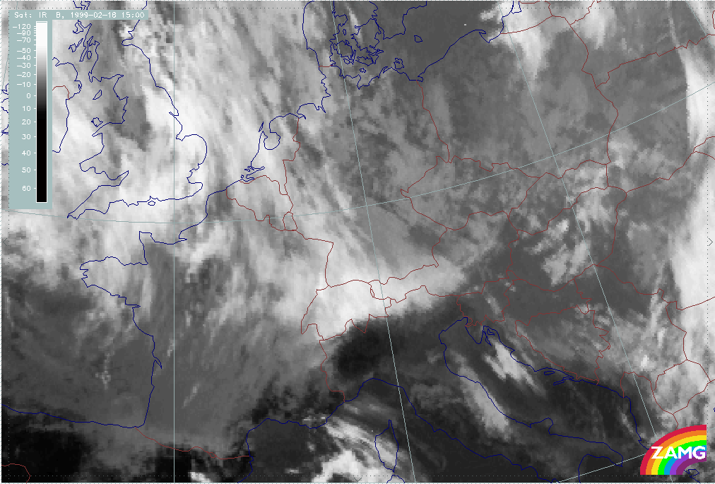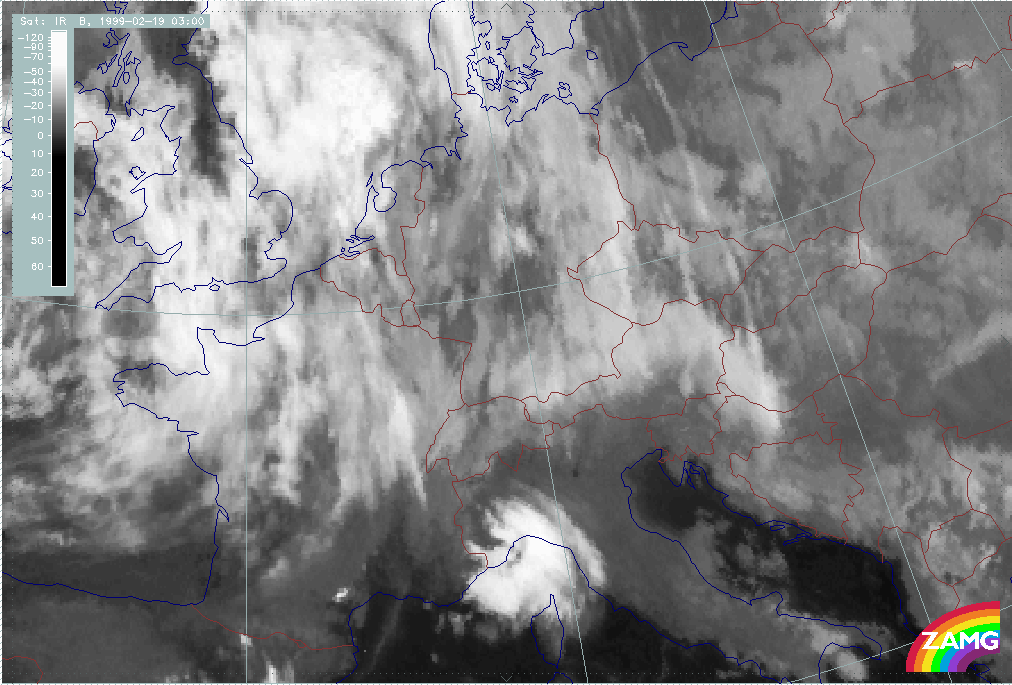 08 February 1999/15.00 UTC - Meteosat IR image; 08/15.00 - 10/18.00 UTC 3-hourly image loop