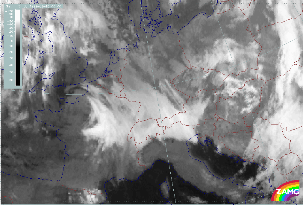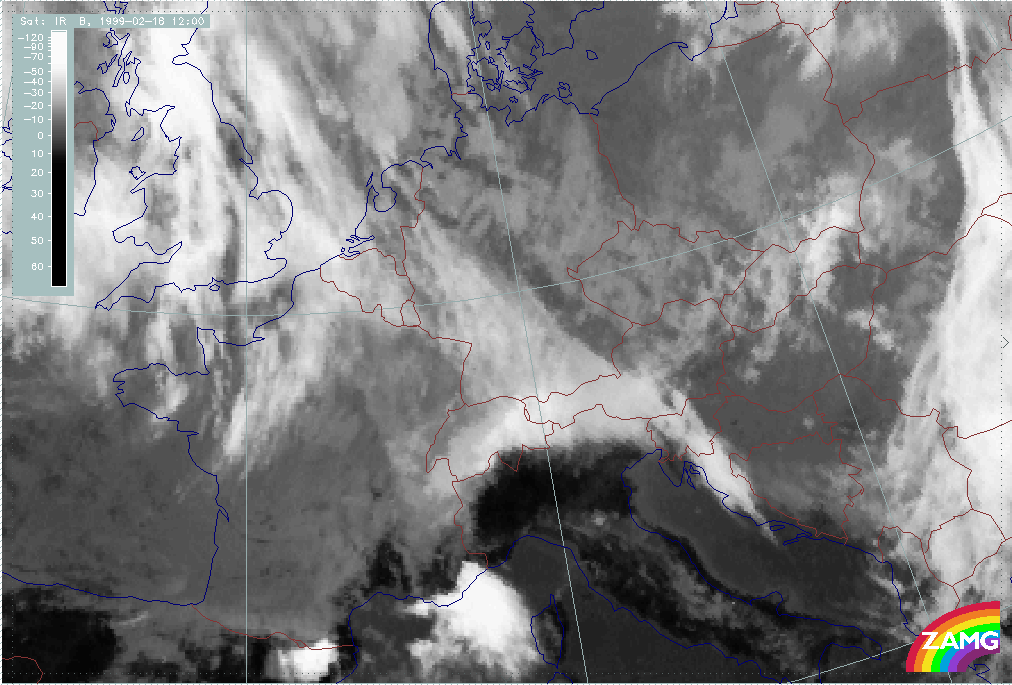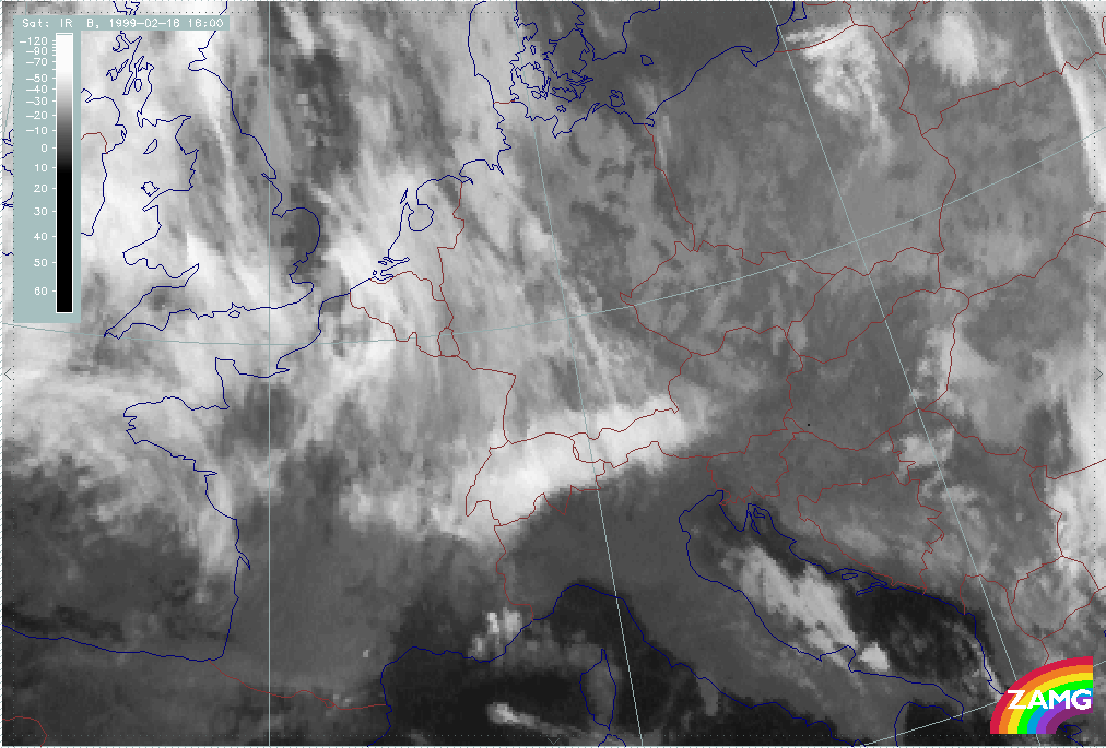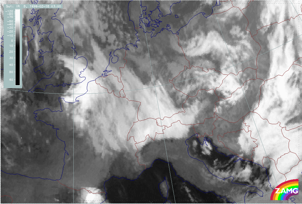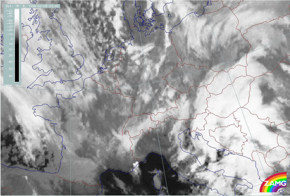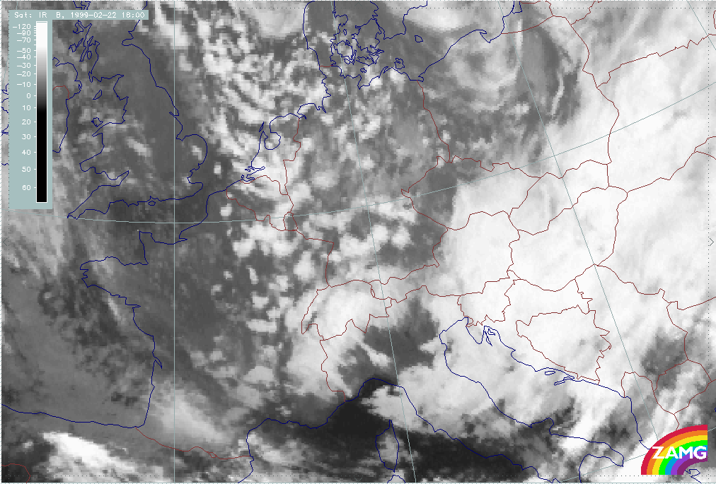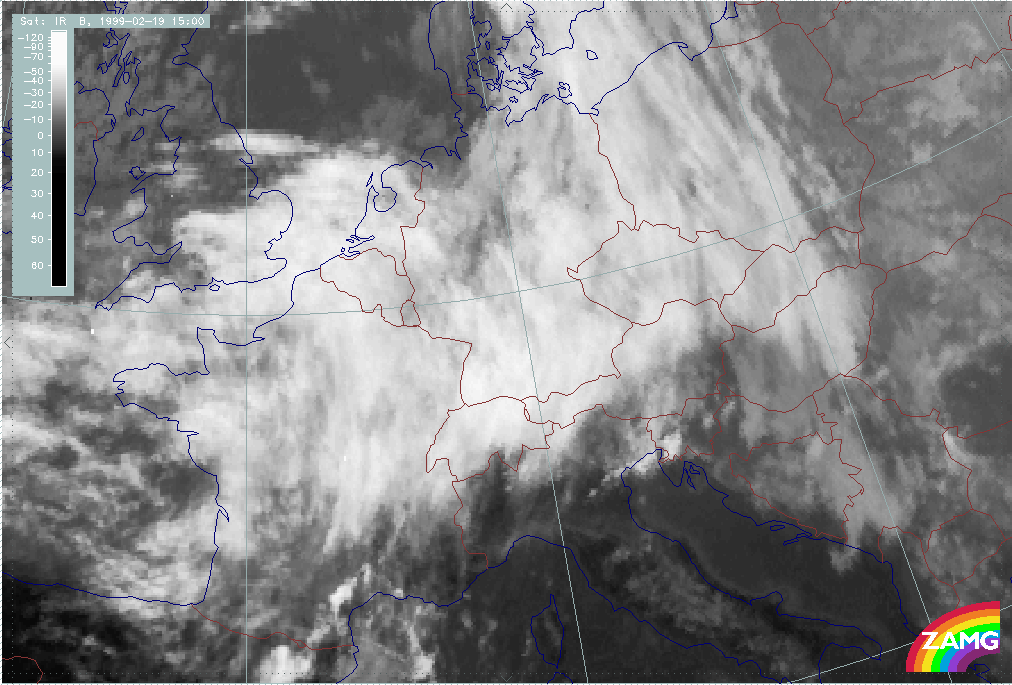 08 February 1999/15.00 UTC - Meteosat IR image; 08/15.00 - 10/18.00 UTC 3-hourly image loop