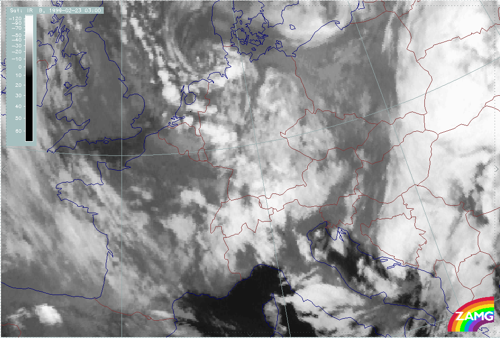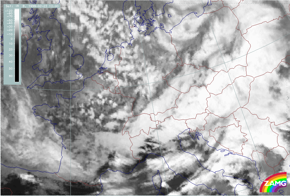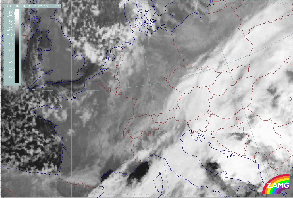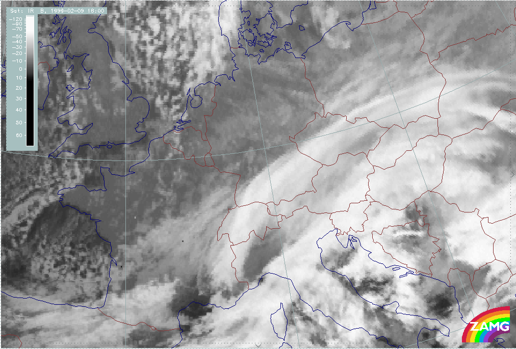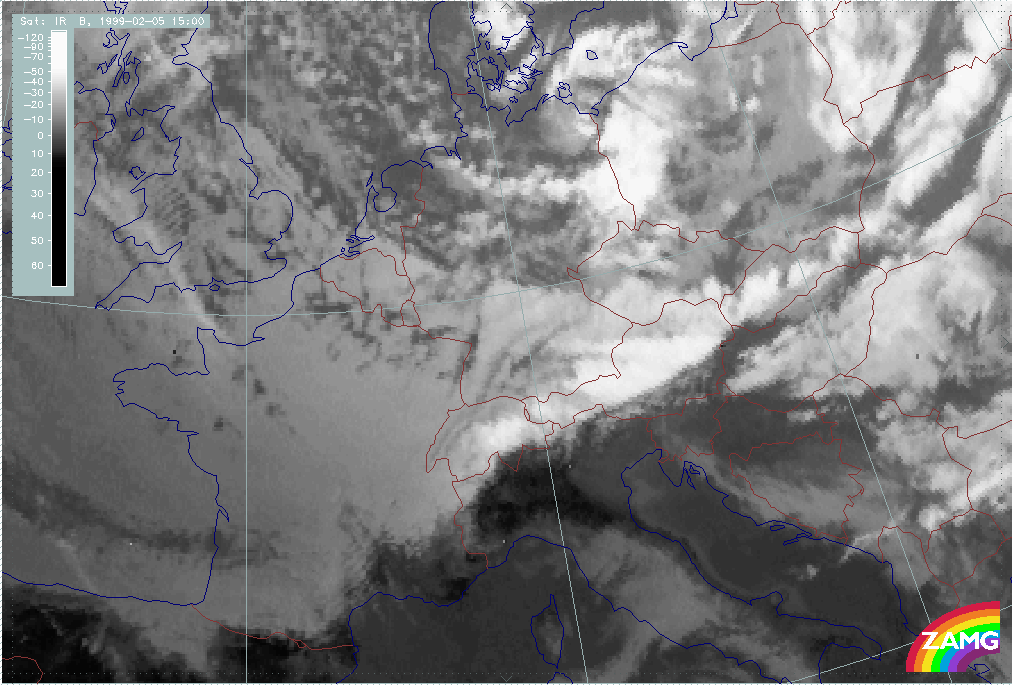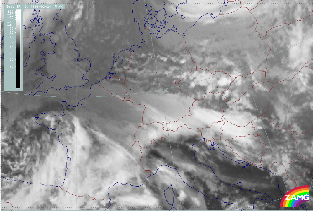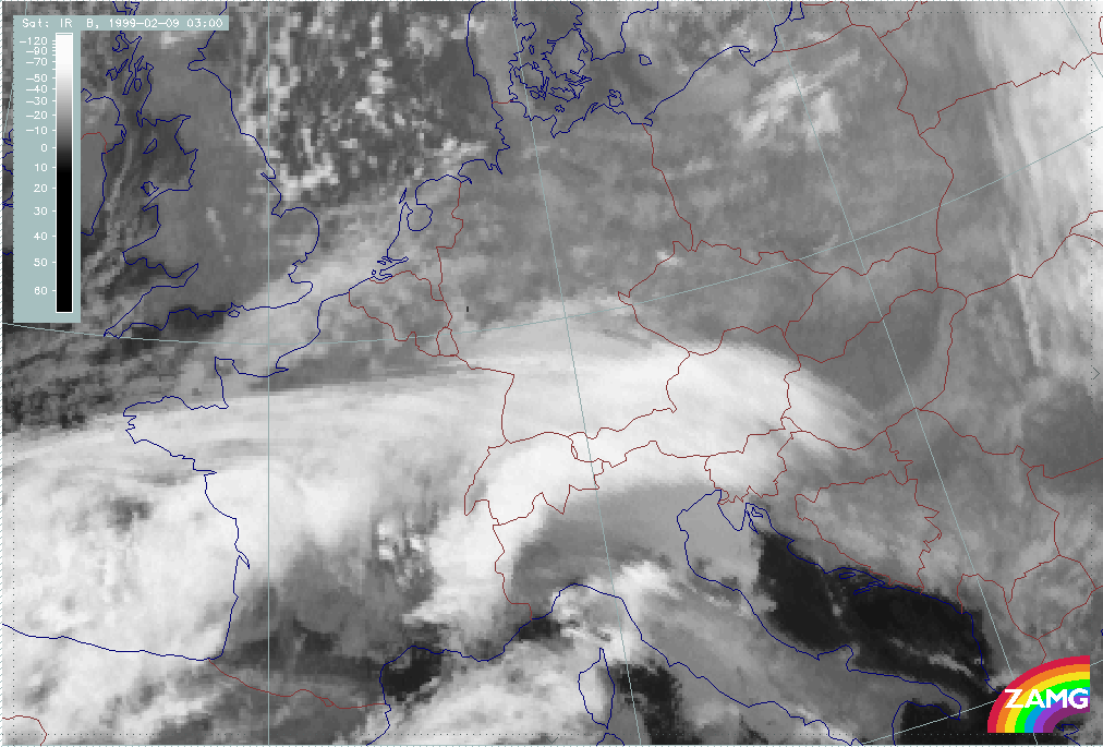 08 February 1999/15.00 UTC - Meteosat IR image; 08/15.00 - 10/18.00 UTC 3-hourly image loop