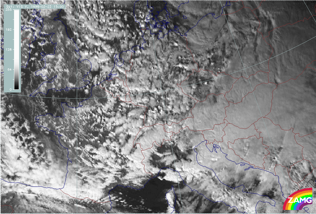 22 February 1999/15.00 UTC - Meteosat VIS image; 22/15.00 - 23/15.00 UTC 3-hourly image loop
