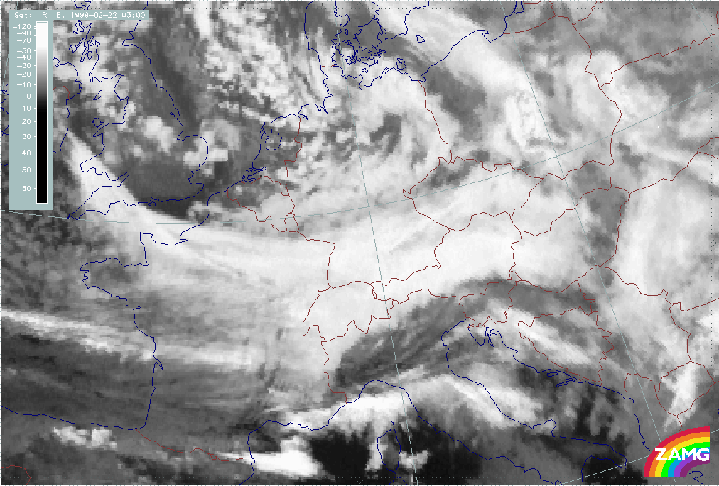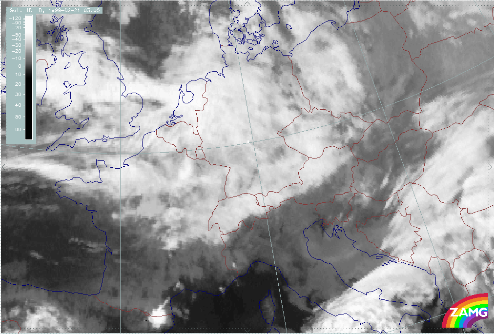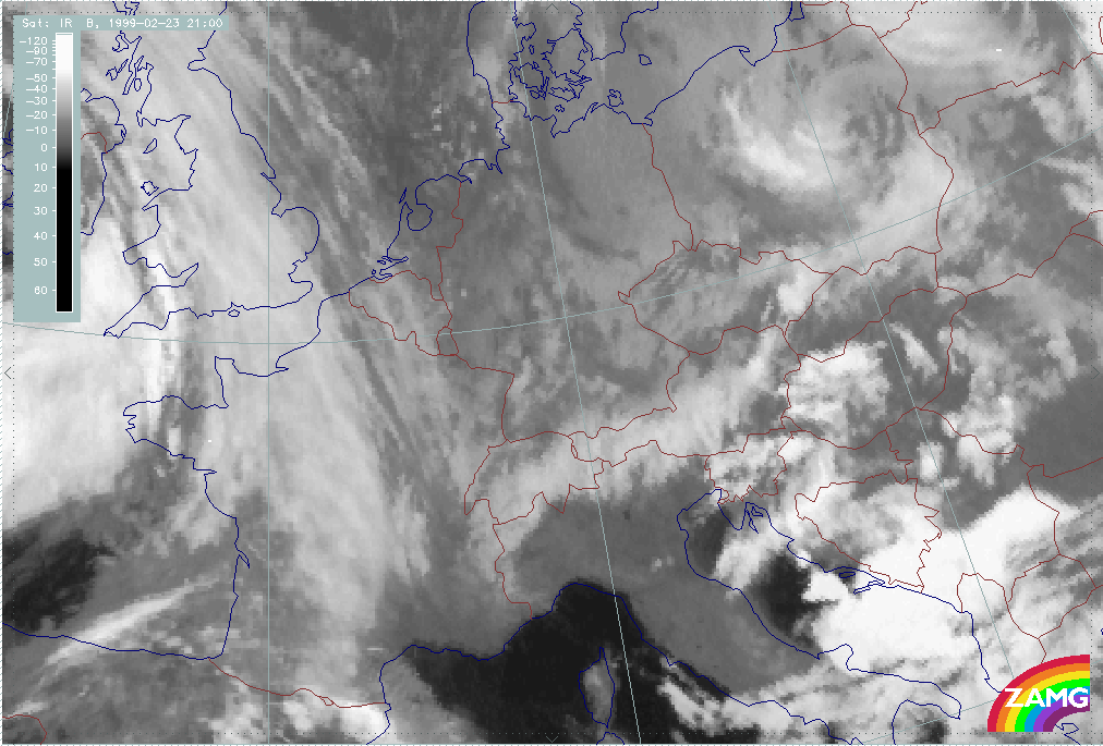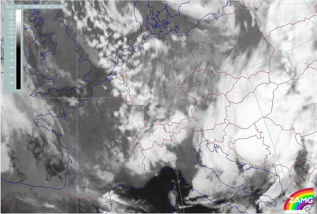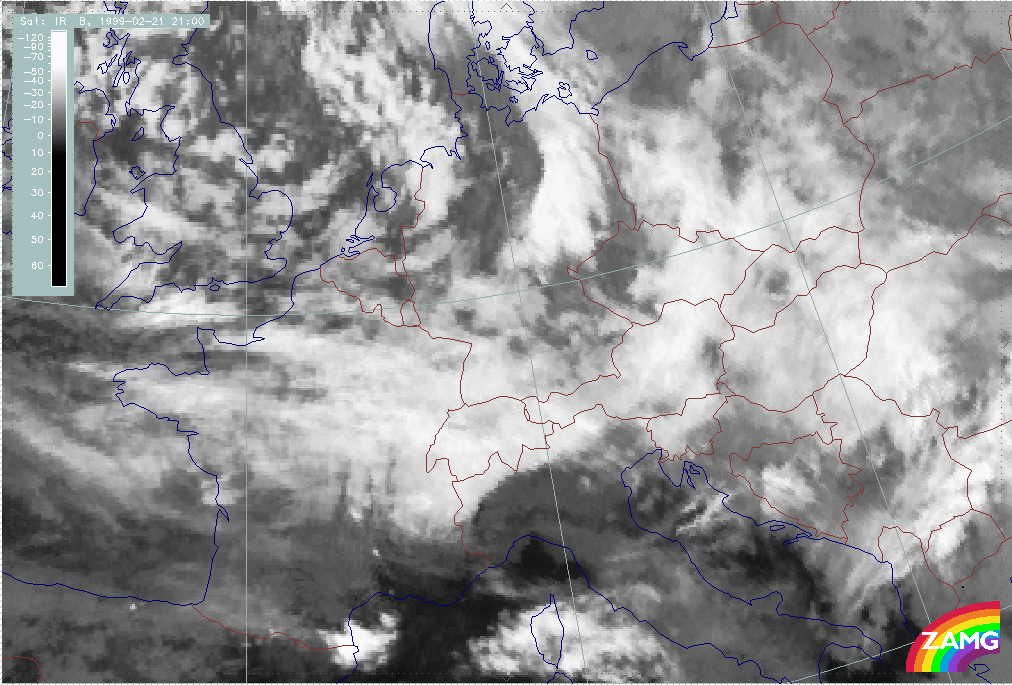 20 February 1999/21.00 UTC - Meteosat IR image; 20/21.00 - 21/15.00 UTC 3-hourly image loop
