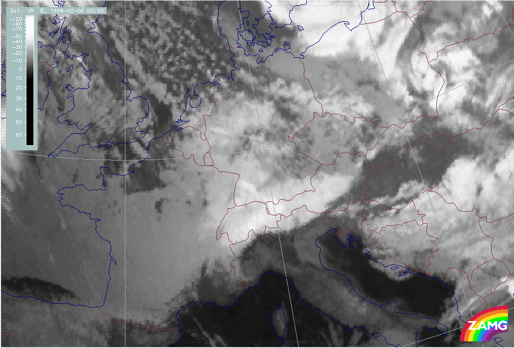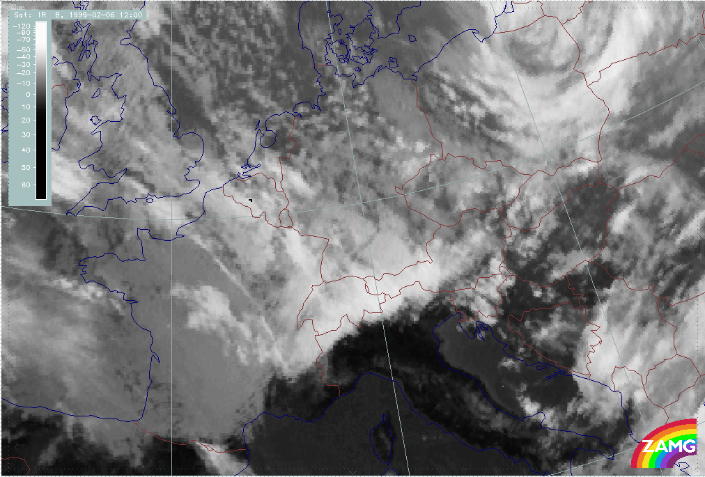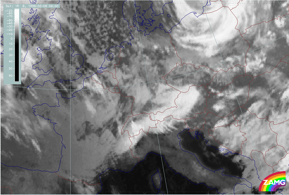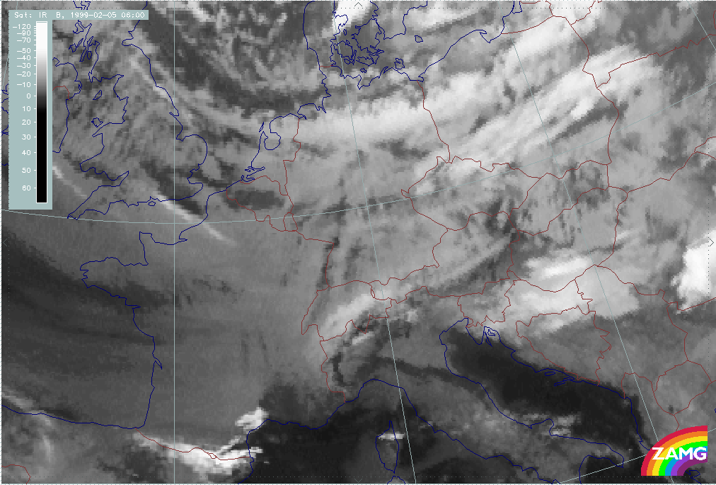 05 February 1999/06.00 UTC - Meteosat IR image; 05/06.00 - 06/12.00 UTC 3-hourly image loop