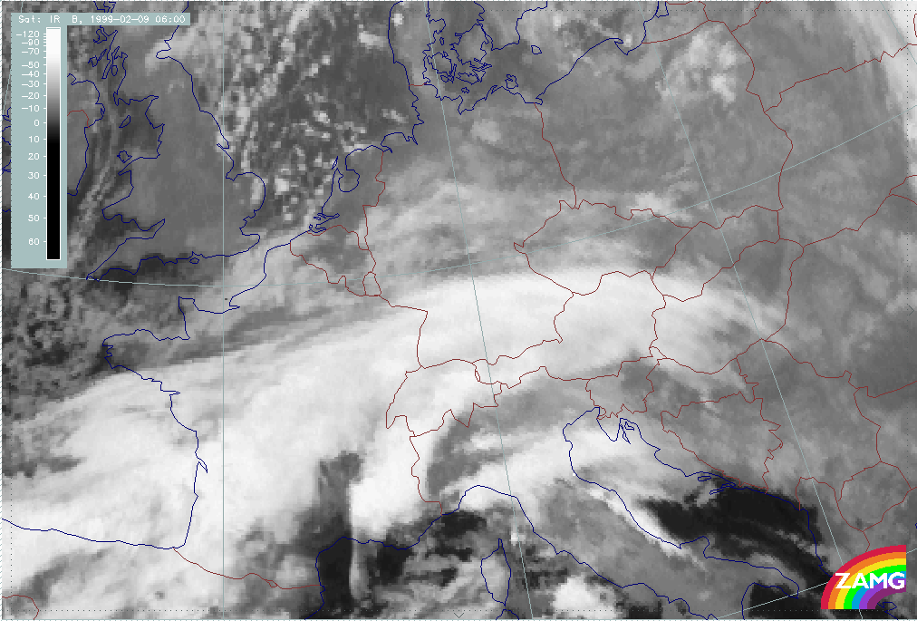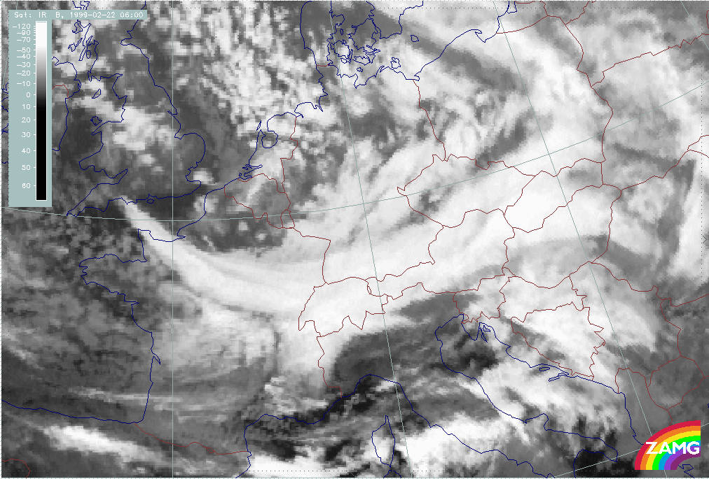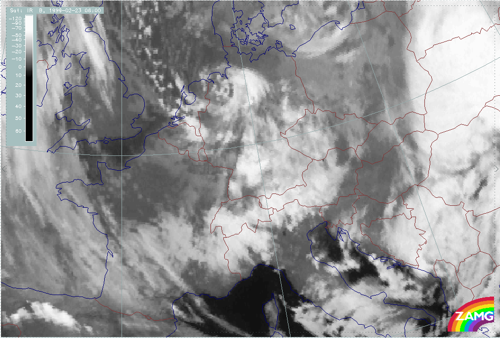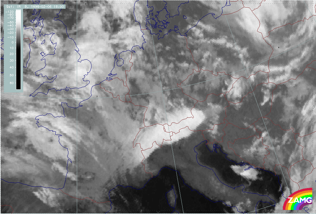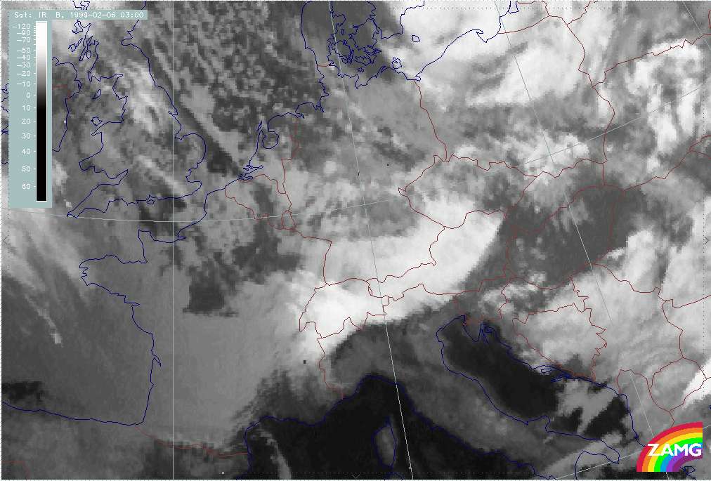 05 February 1999/06.00 UTC - Meteosat IR image; 05/06.00 - 06/12.00 UTC 3-hourly image loop