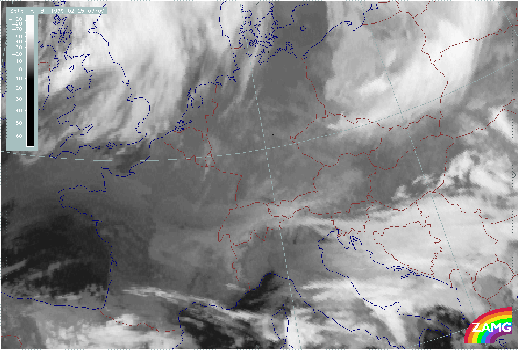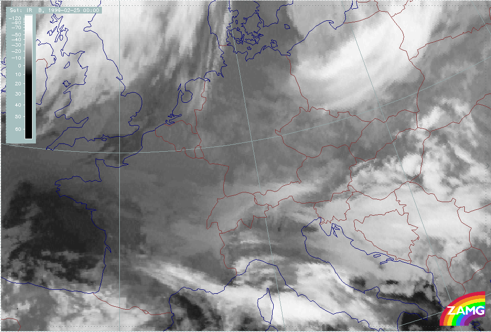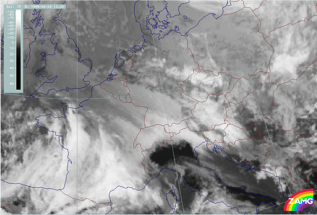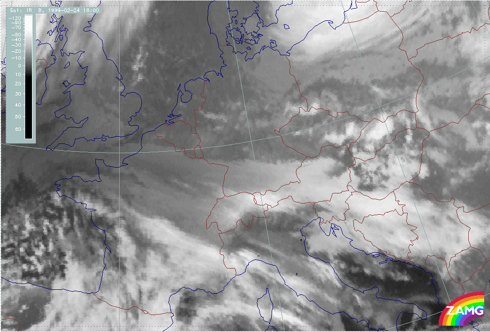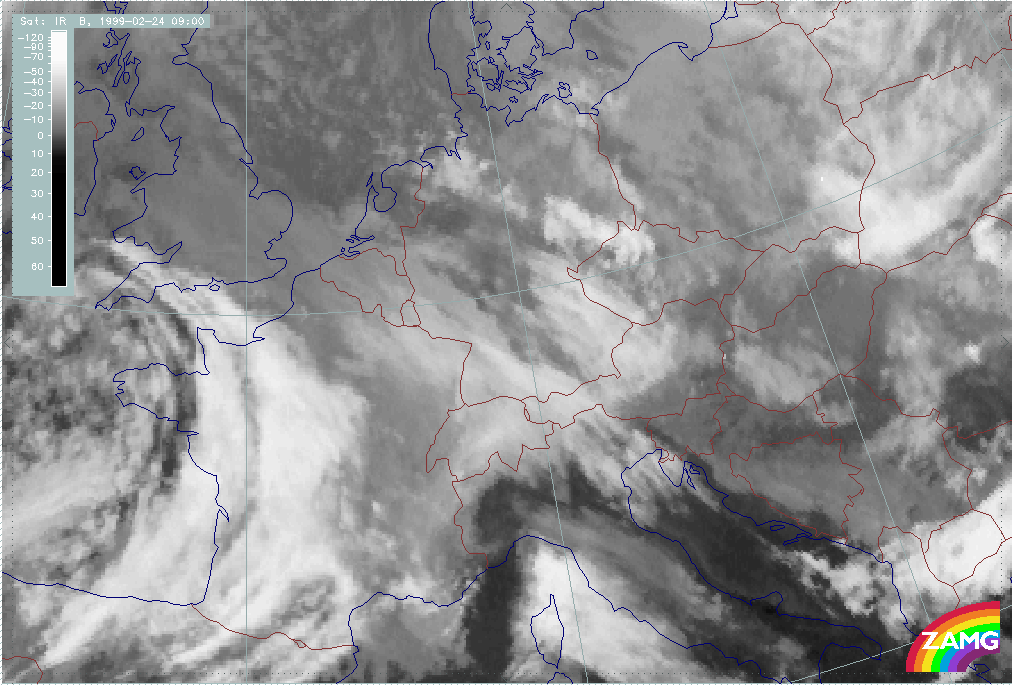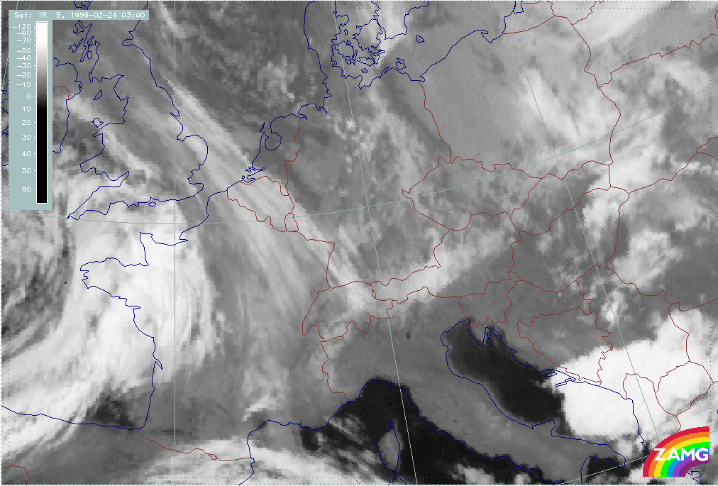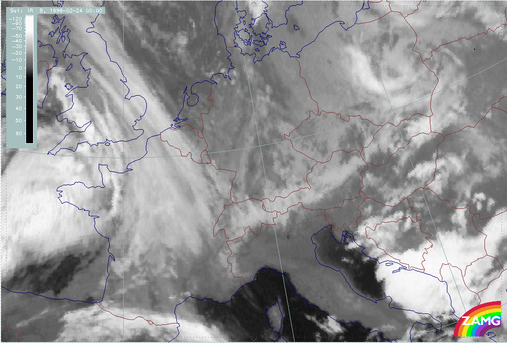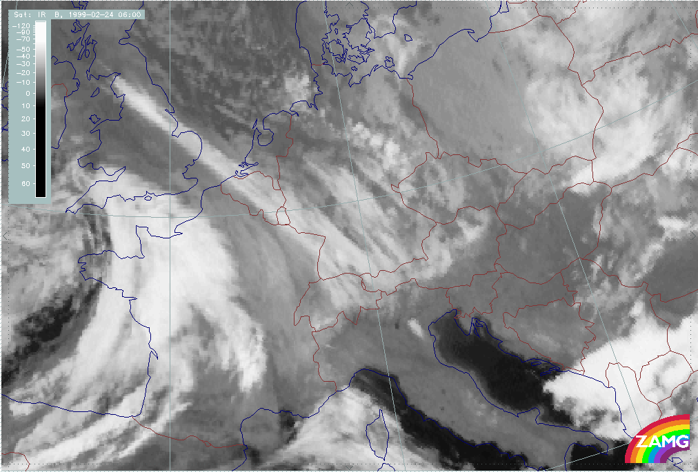24 February 1999/00.00 UTC - Meteosat IR image; 24/00.00 - 24/18.00 UTC 3-hourly image loop