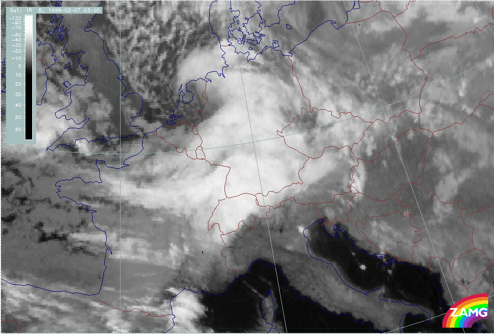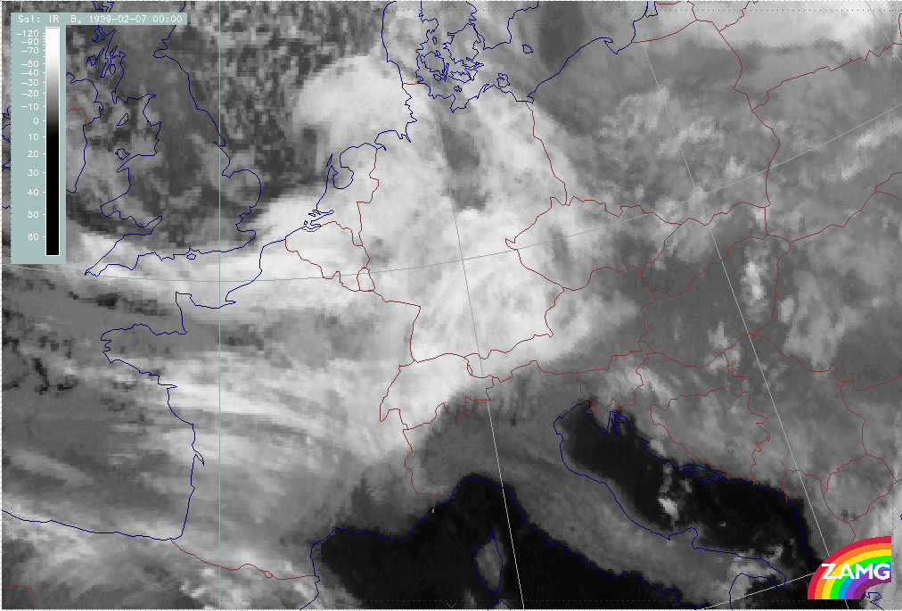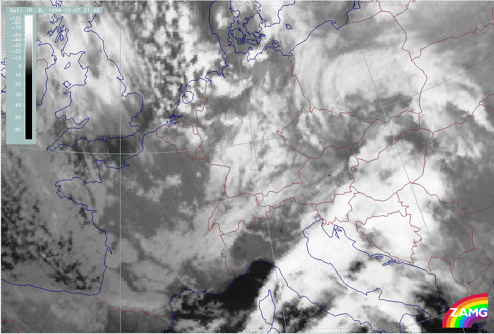 07 February 1999/21.00 UTC - Meteosat IR image; 07/21.00 - 08/12.00 UTC 3-hourly image loop