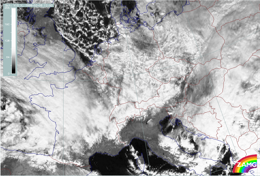 08 February 1999/09.00 UTC - Meteosat VIS image; 08/09.00 - 08/12.00 UTC 3-hourly image loop