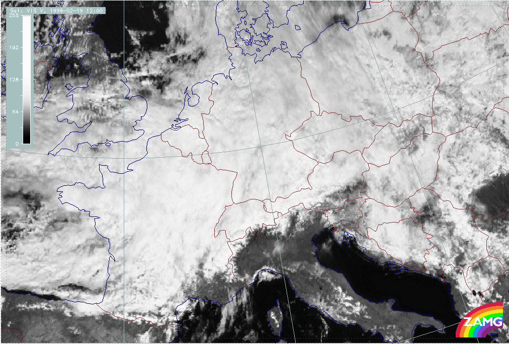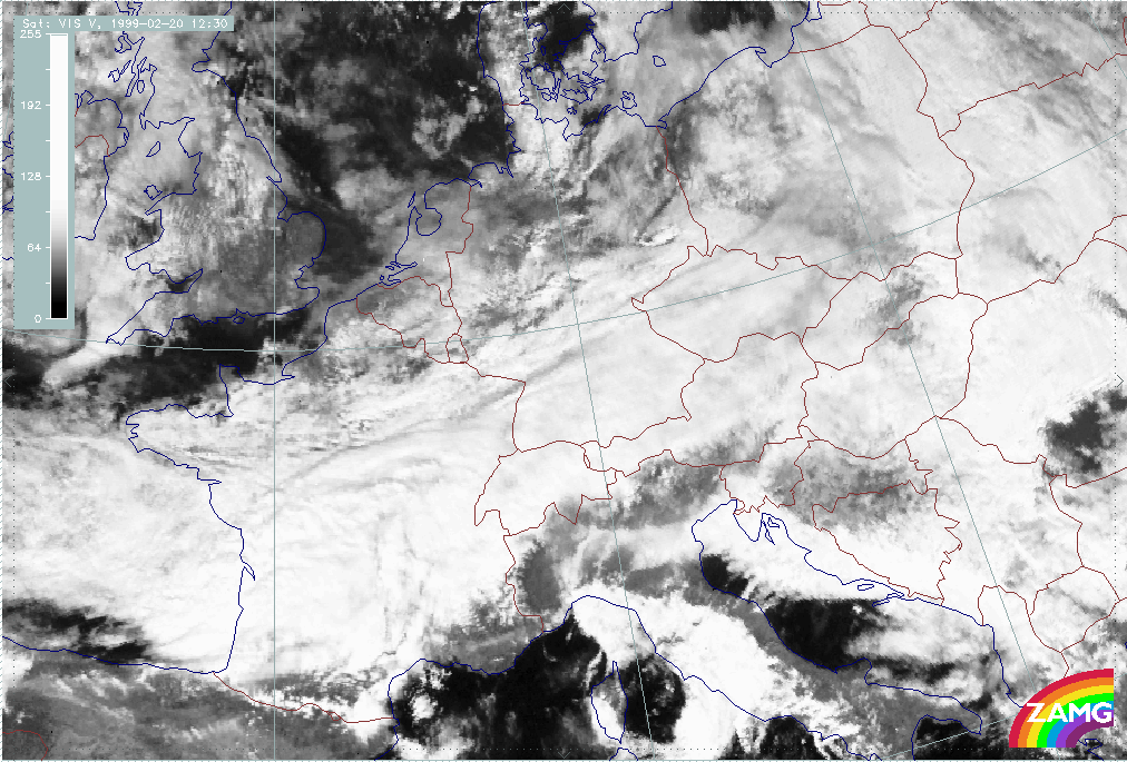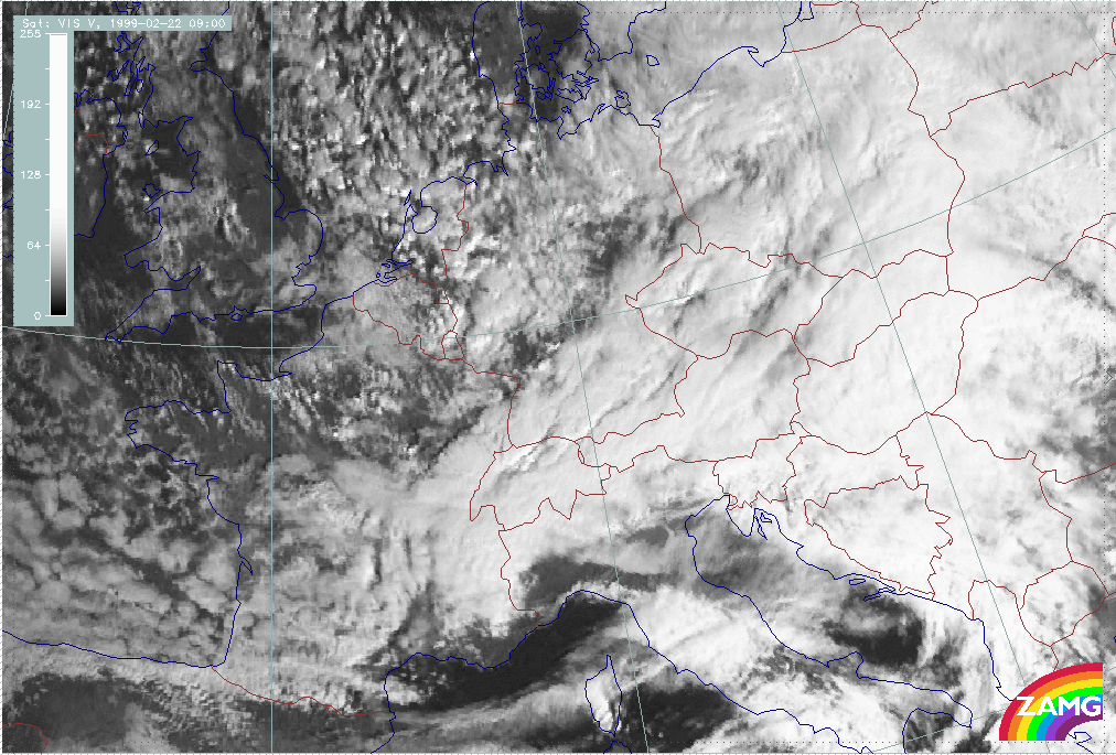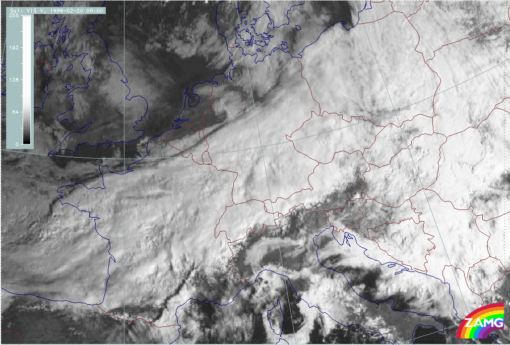 20 February 1999/09.00 UTC - Meteosat VIS image; 20/09.00 - 20/18.00 UTC 3-hourly image loop
