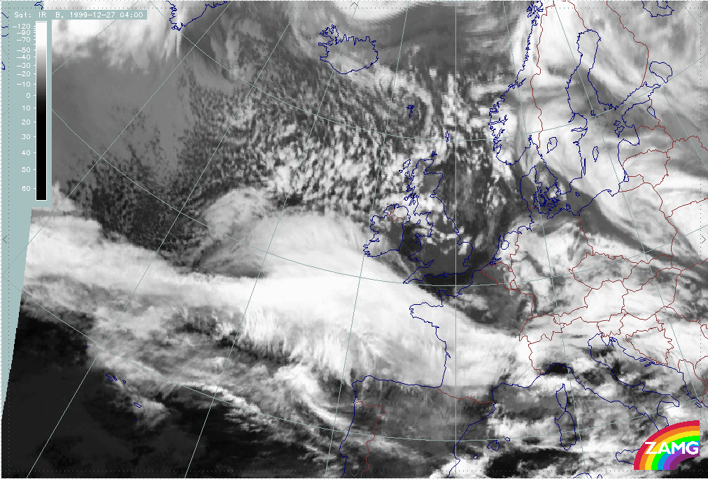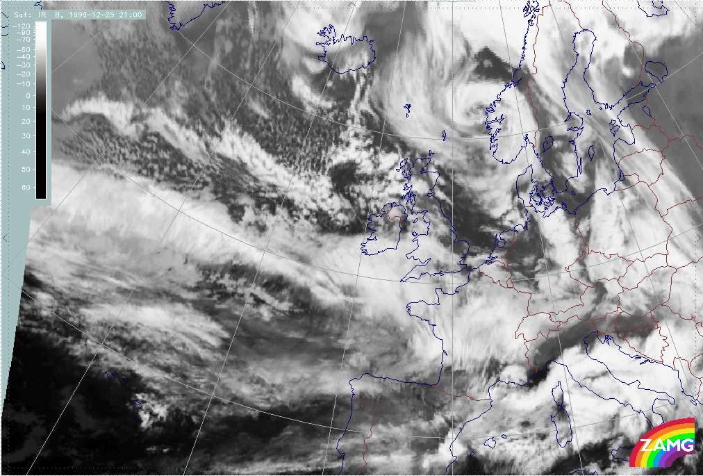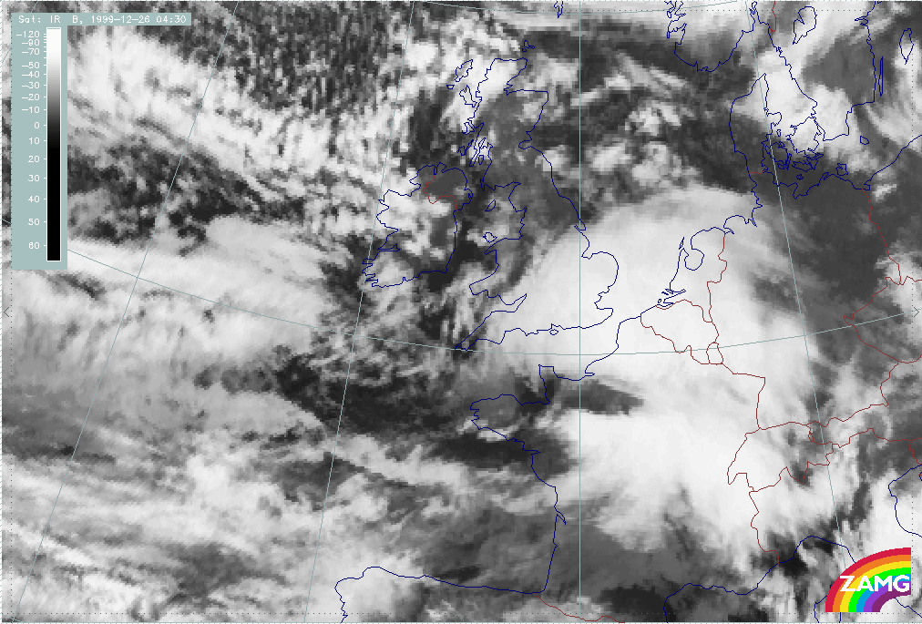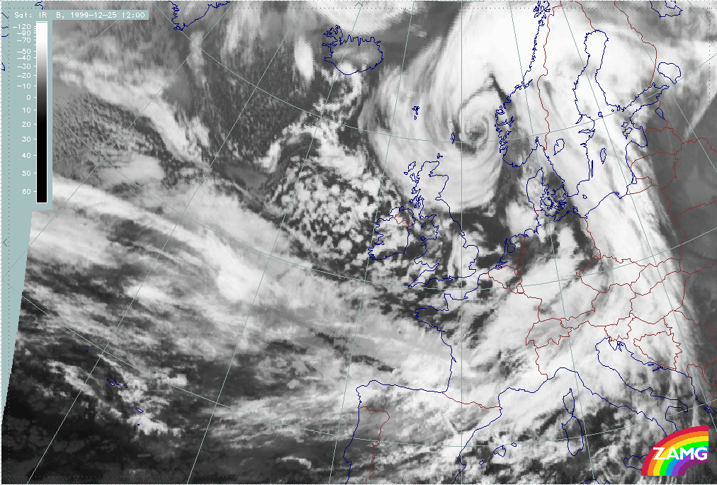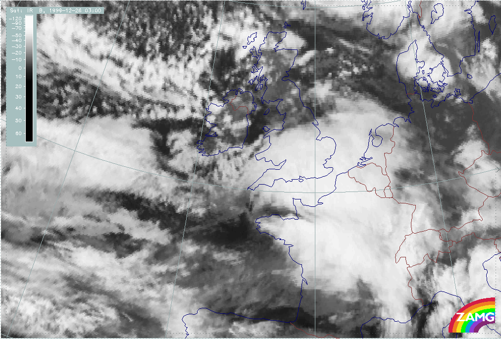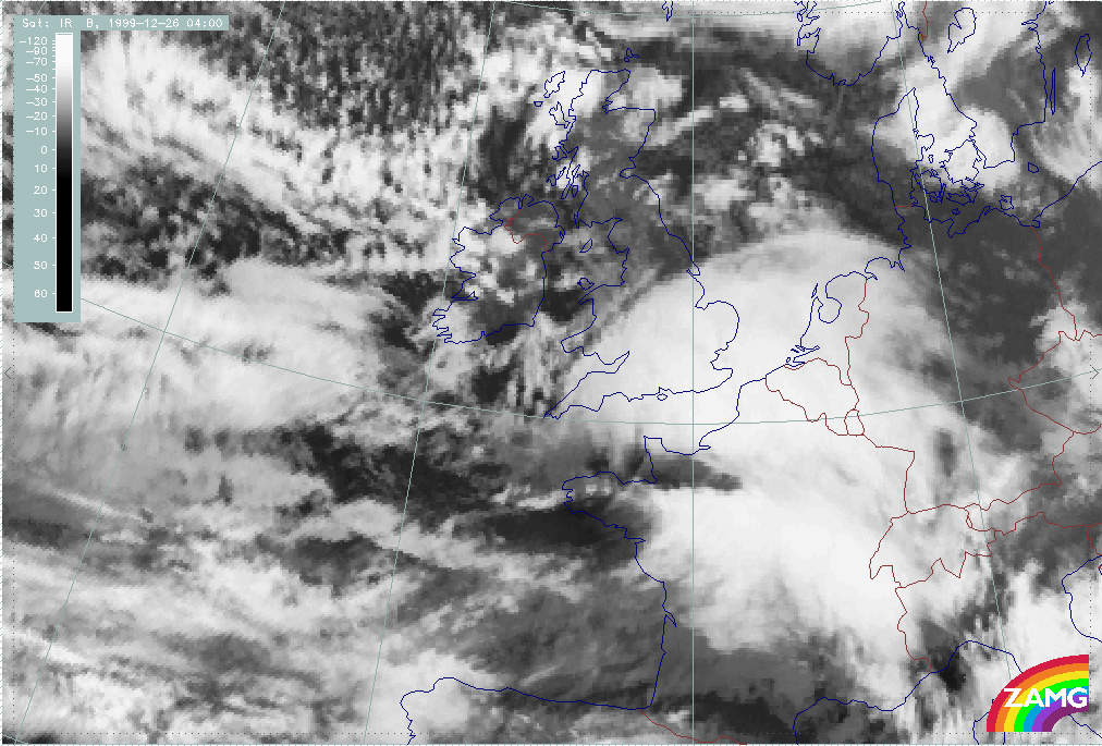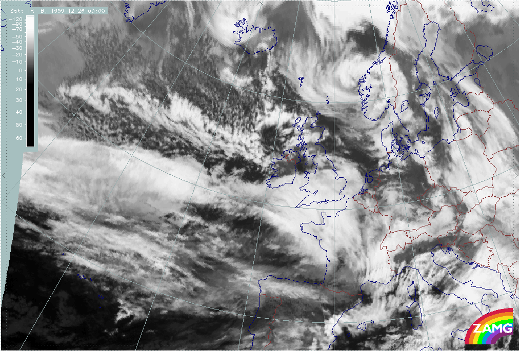 26 December 1999/12.00 UTC - Meteosat IR image; 26/12.00 - 27/18.00 UTC 3-hourly image loop