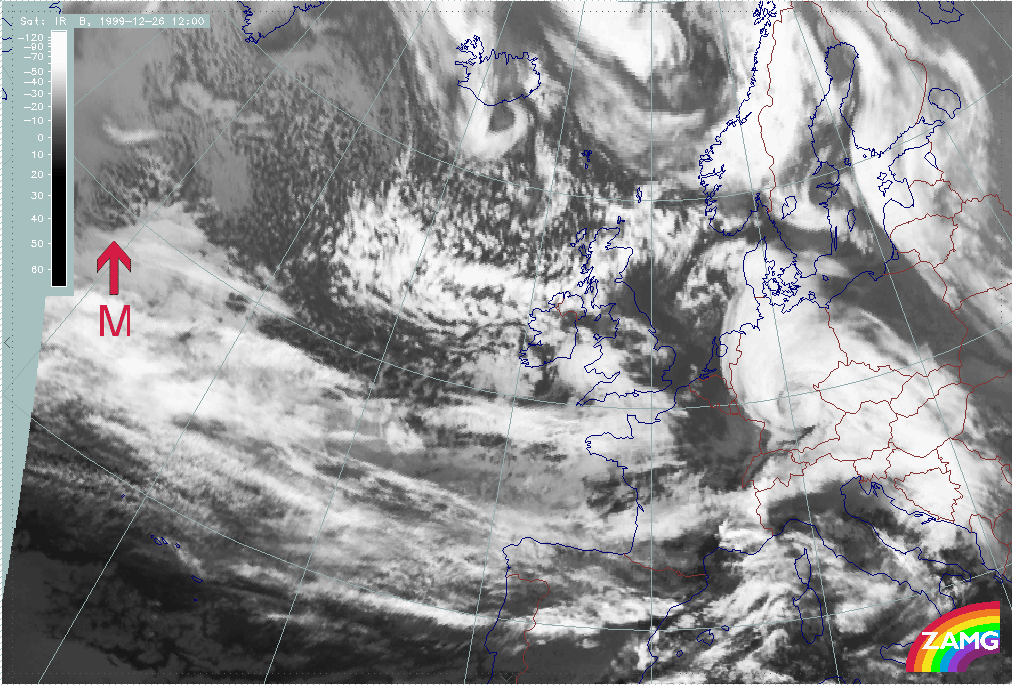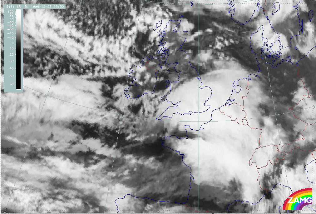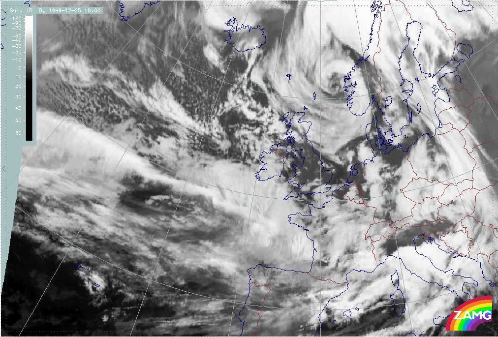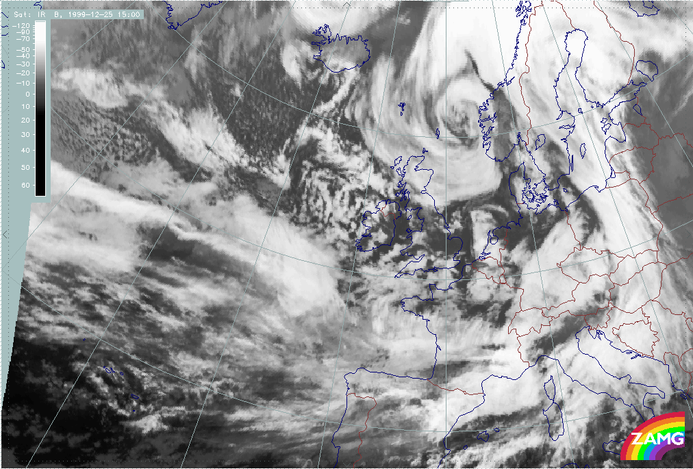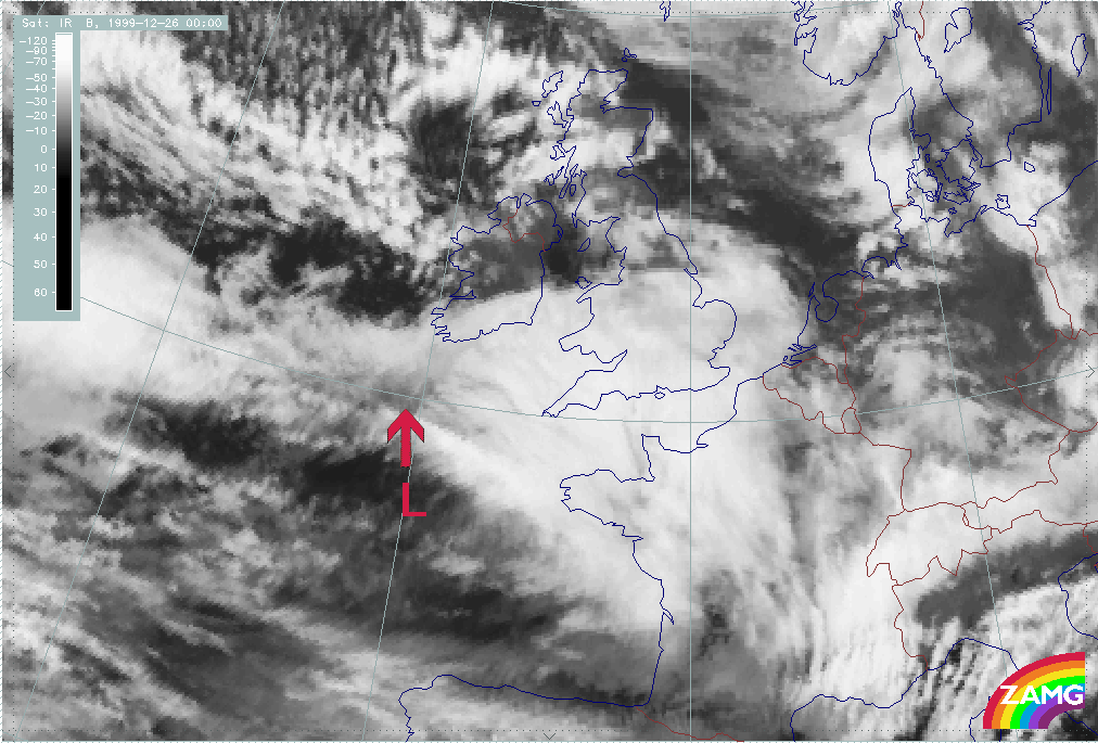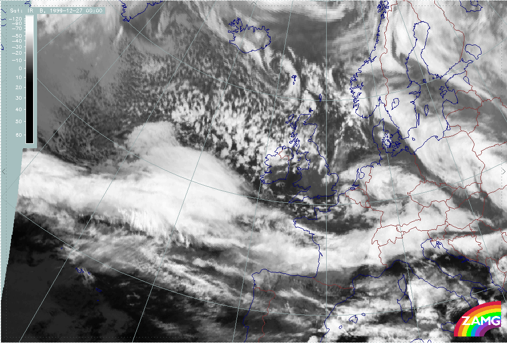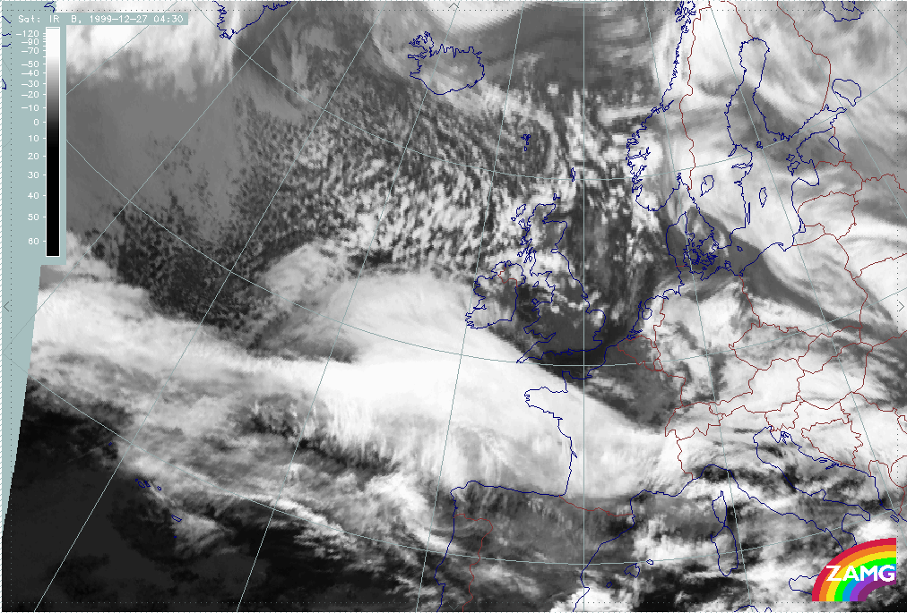 26 December 1999/12.00 UTC - Meteosat IR image; 26/12.00 - 27/18.00 UTC 3-hourly image loop