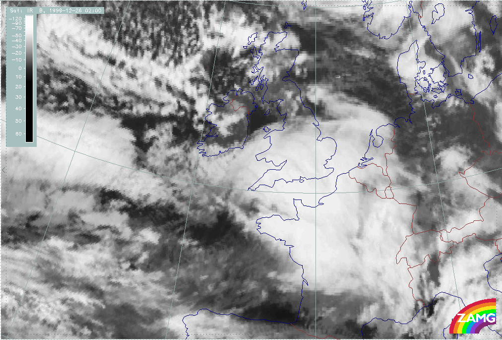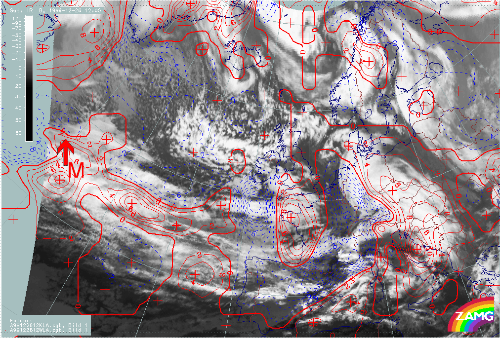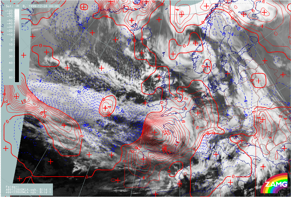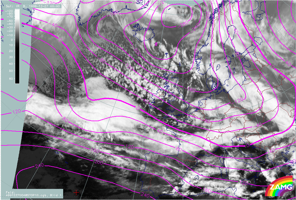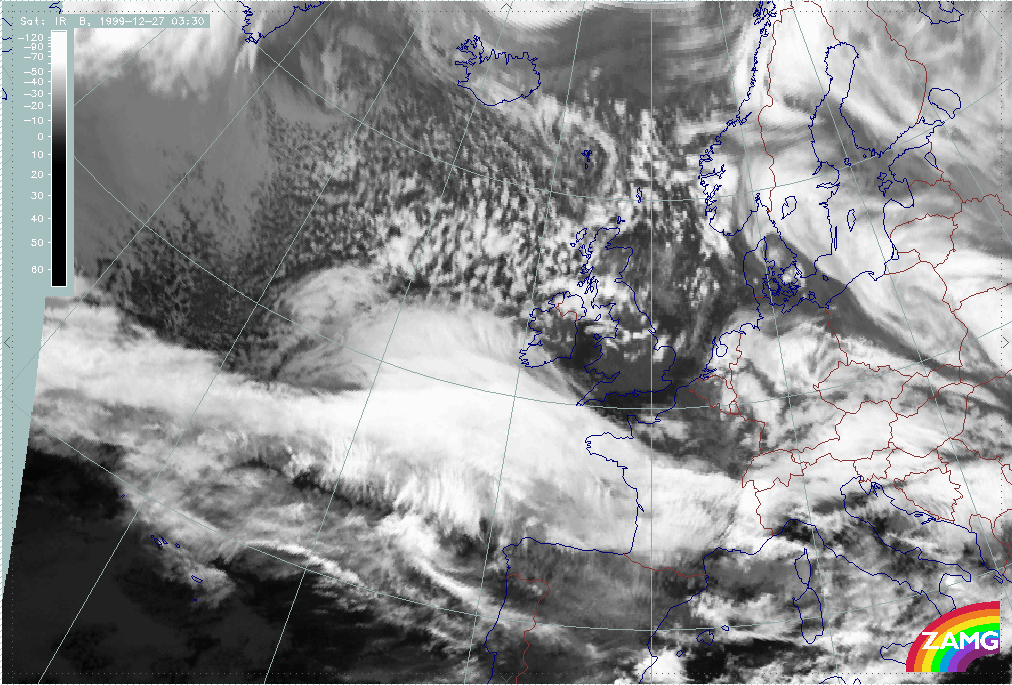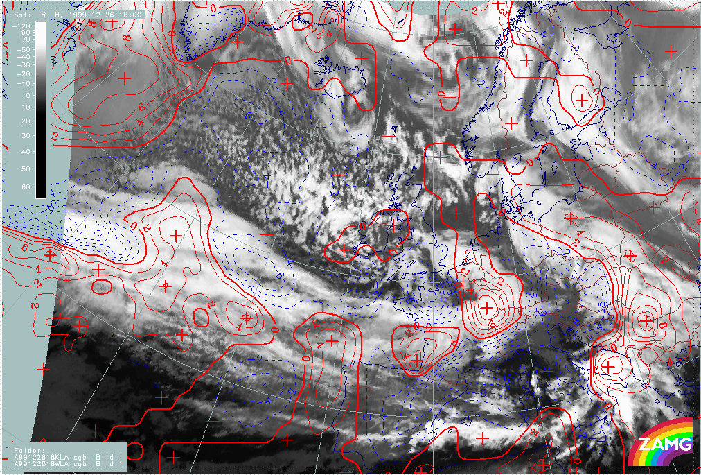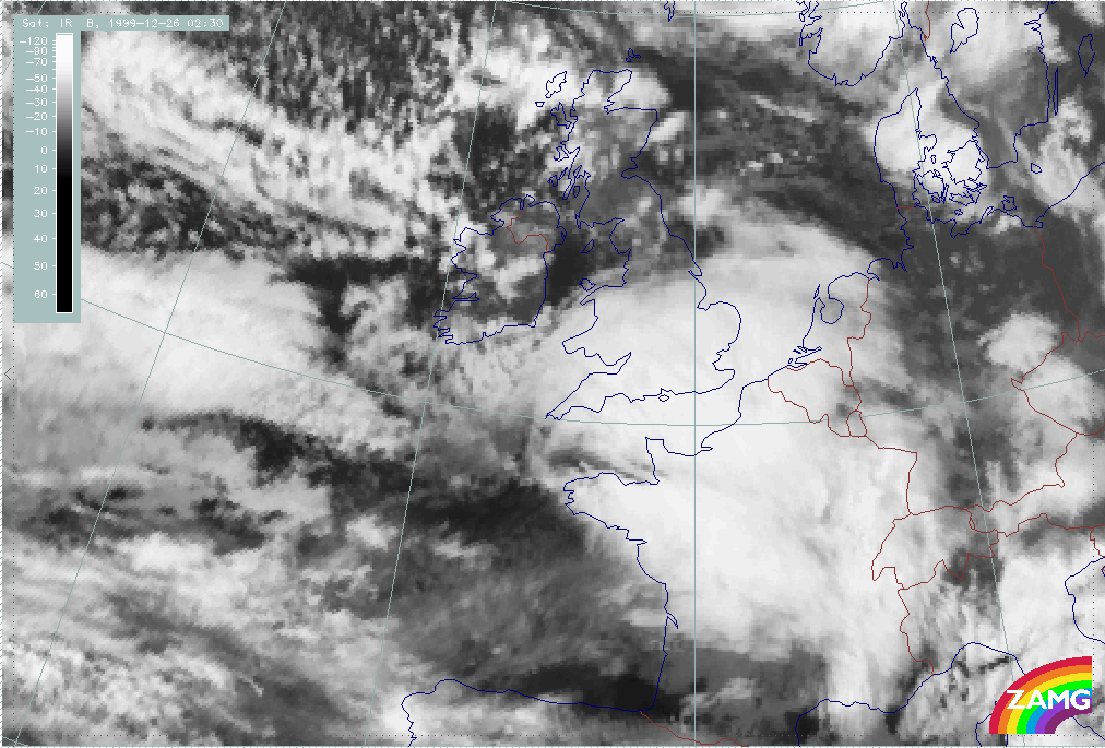 26 December 1999/12.00 UTC - Meteosat IR image; 26/12.00 - 27/18.00 UTC 3-hourly image loop