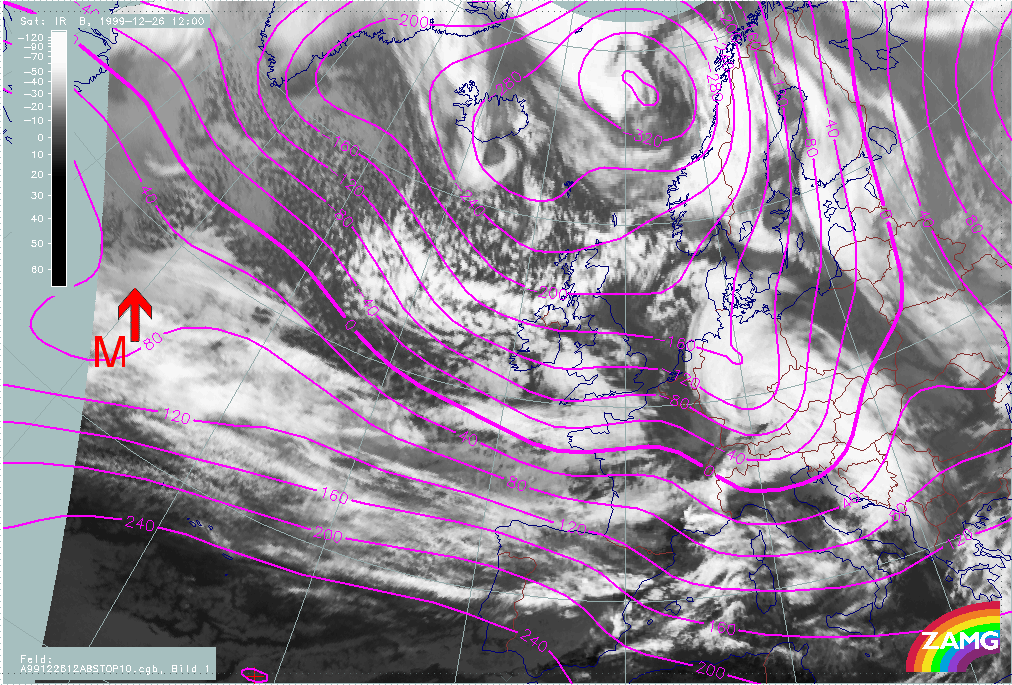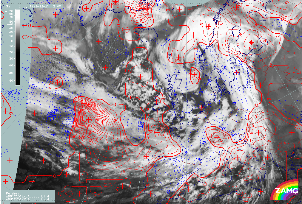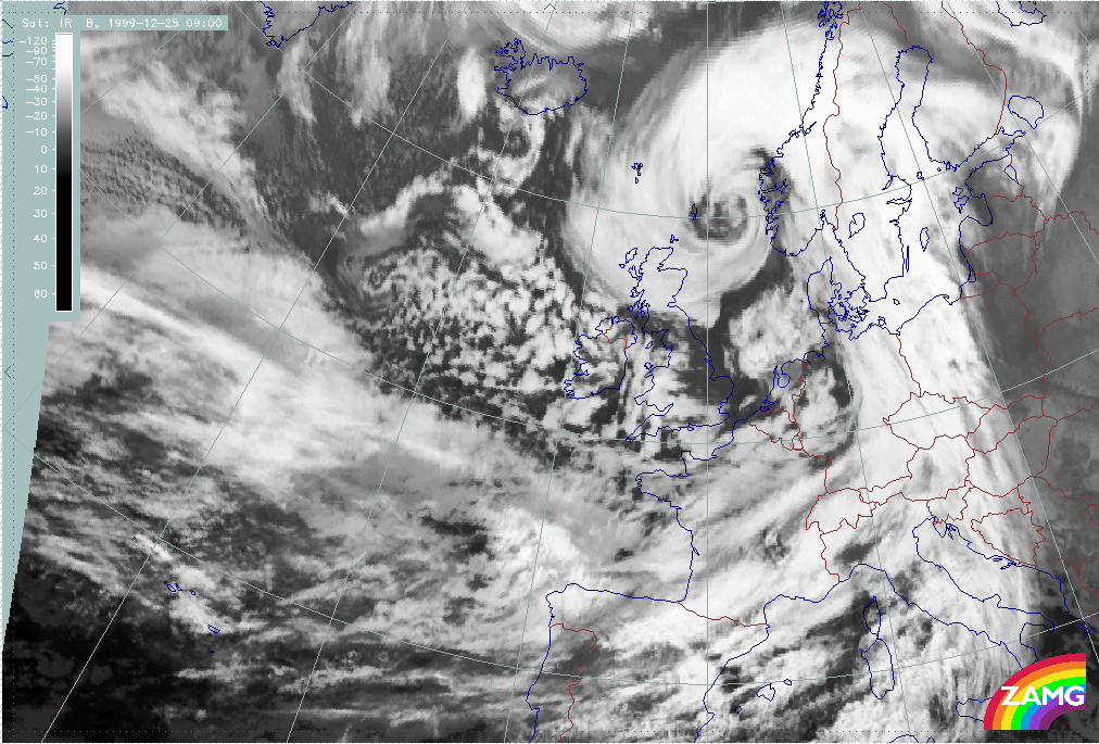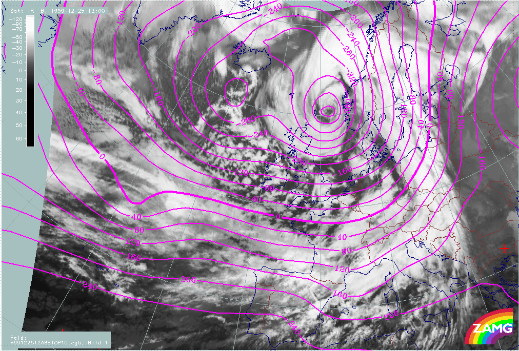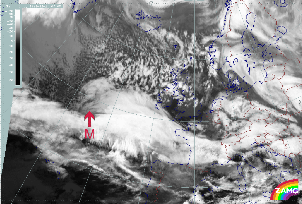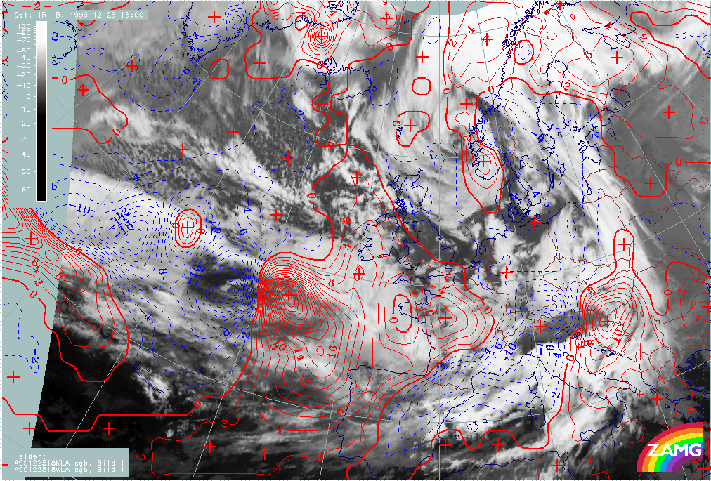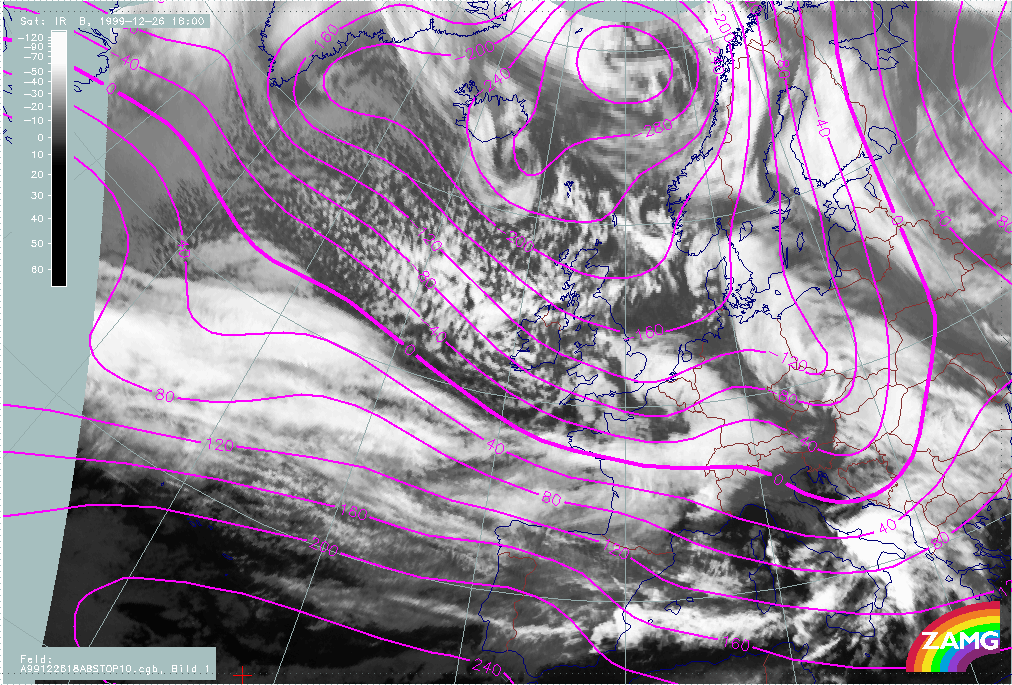 26 December 1999/12.00 UTC - Meteosat IR image; 26/12.00 - 27/18.00 UTC 3-hourly image loop