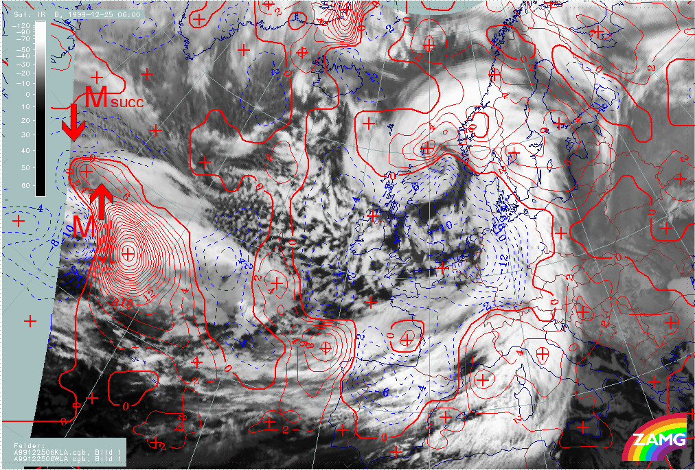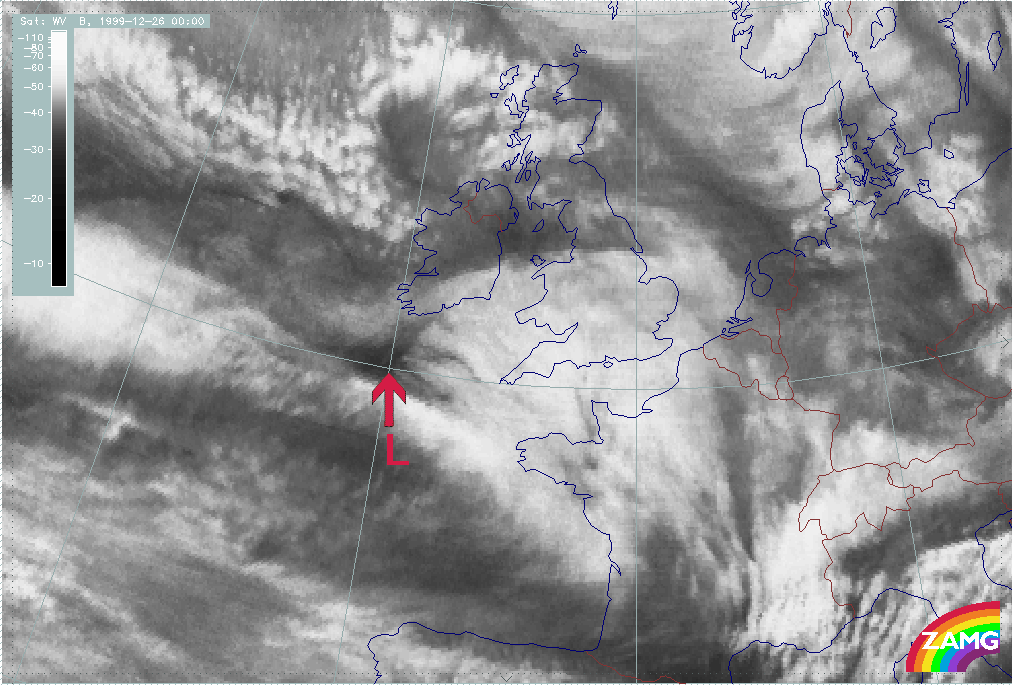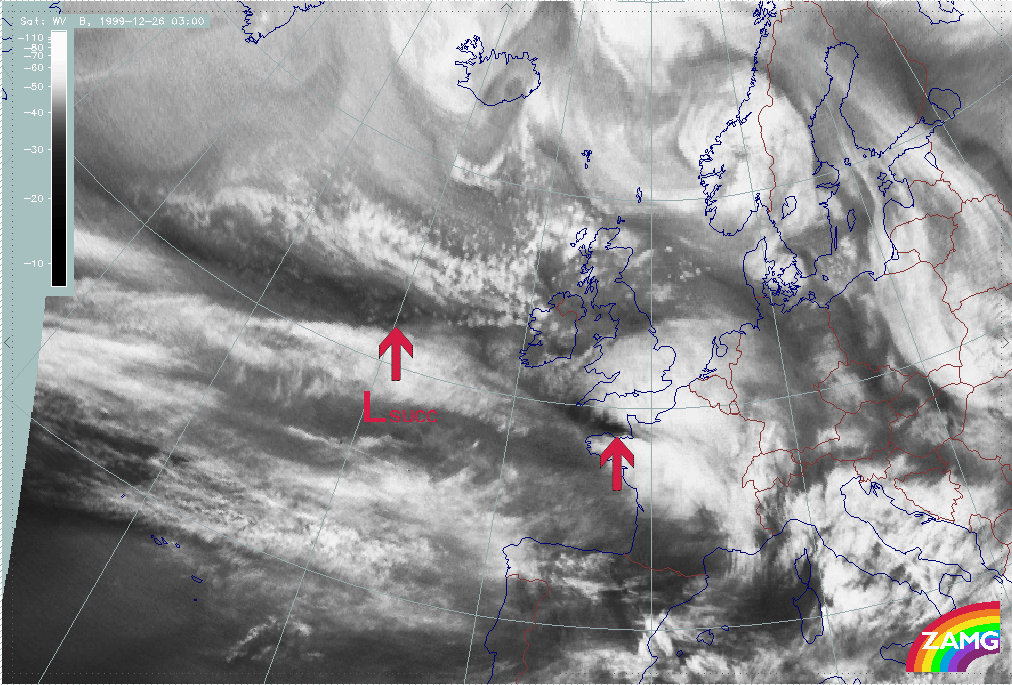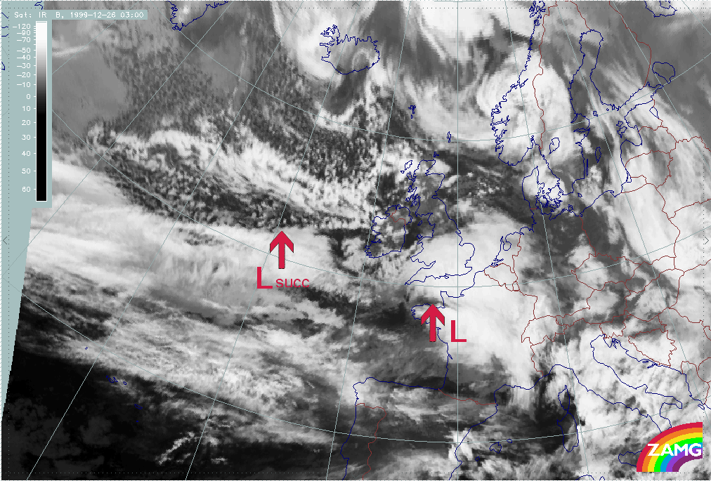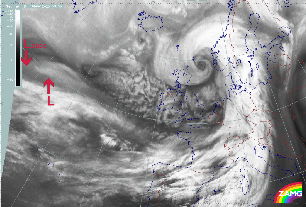 - Between 26 December 06.00 and 09.00 UTC, there is a distinct darkening in the WV image, immediately behind the cloud head belonging to "Lothar successor"; this could be regarded as the start of "Rapid Cyclogenesis";
