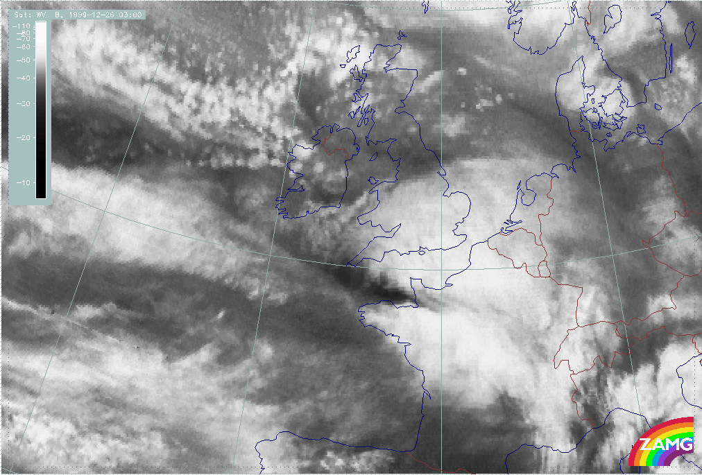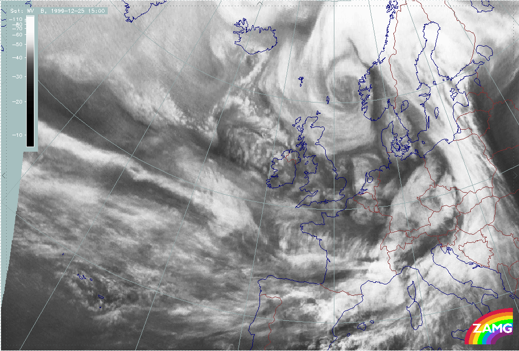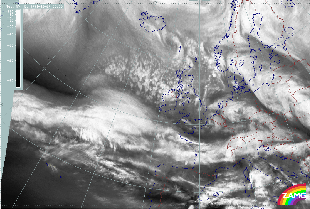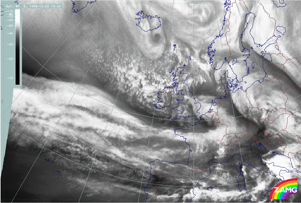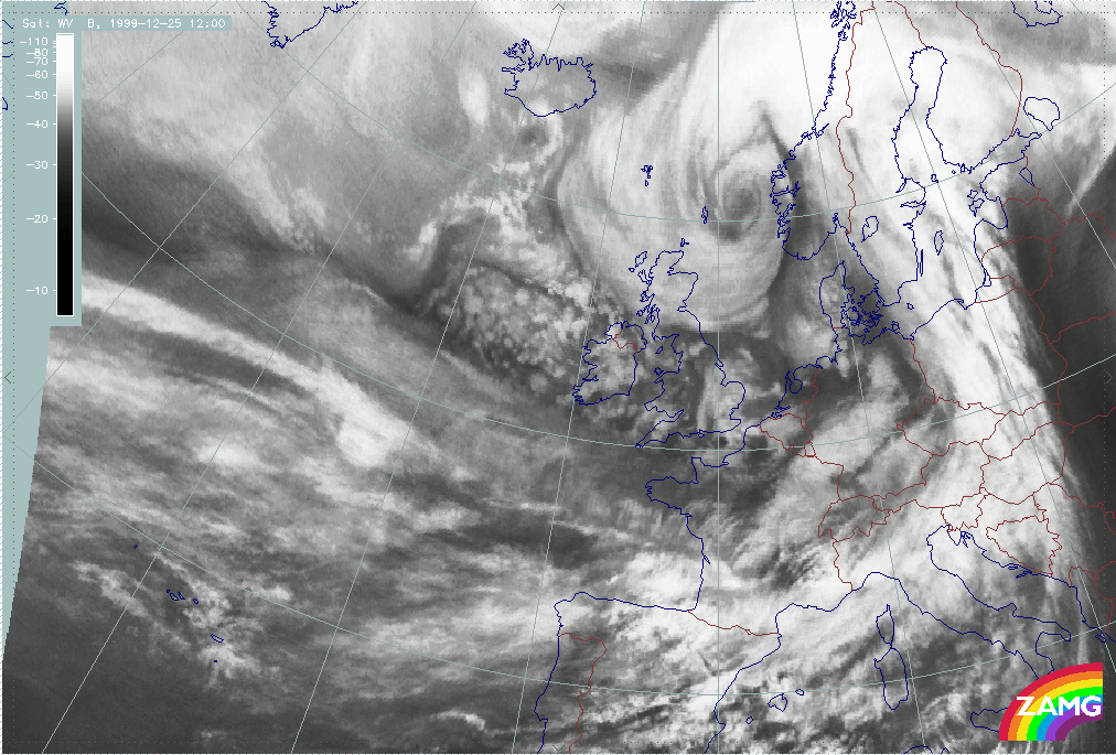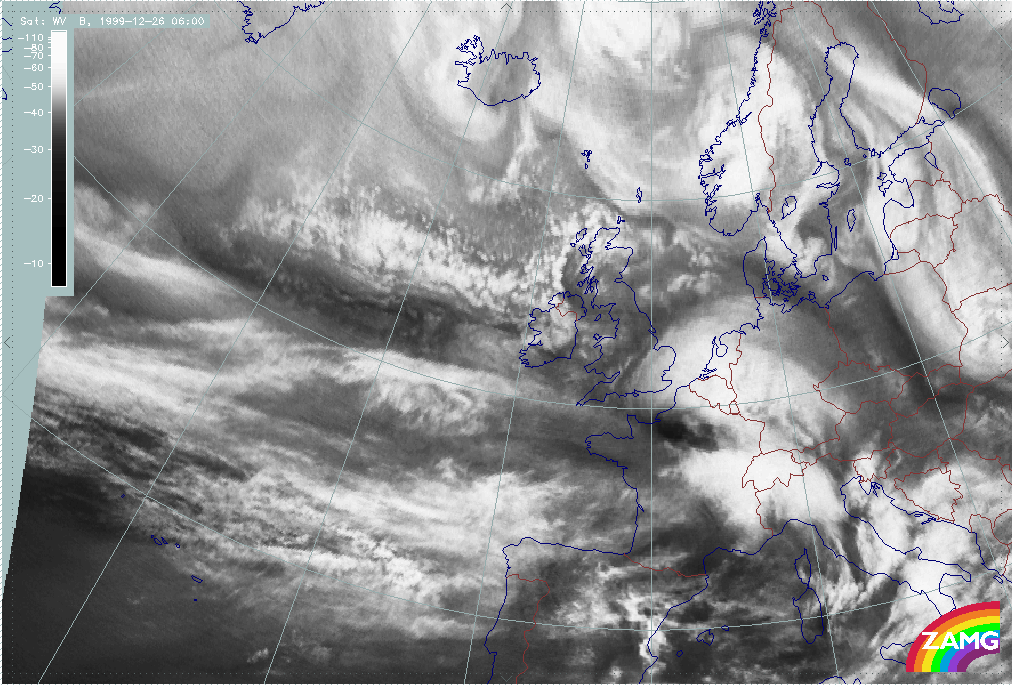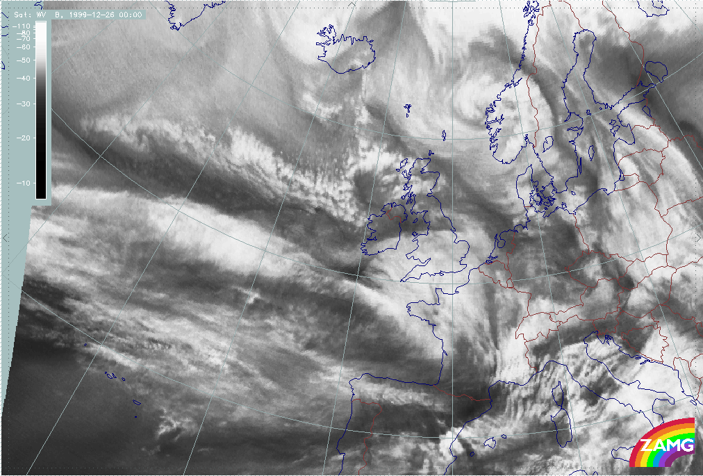 26 December 1999/12.00 UTC - Meteosat WV image; 26/12.00 - 27/18.00 UTC 3-hourly image loop